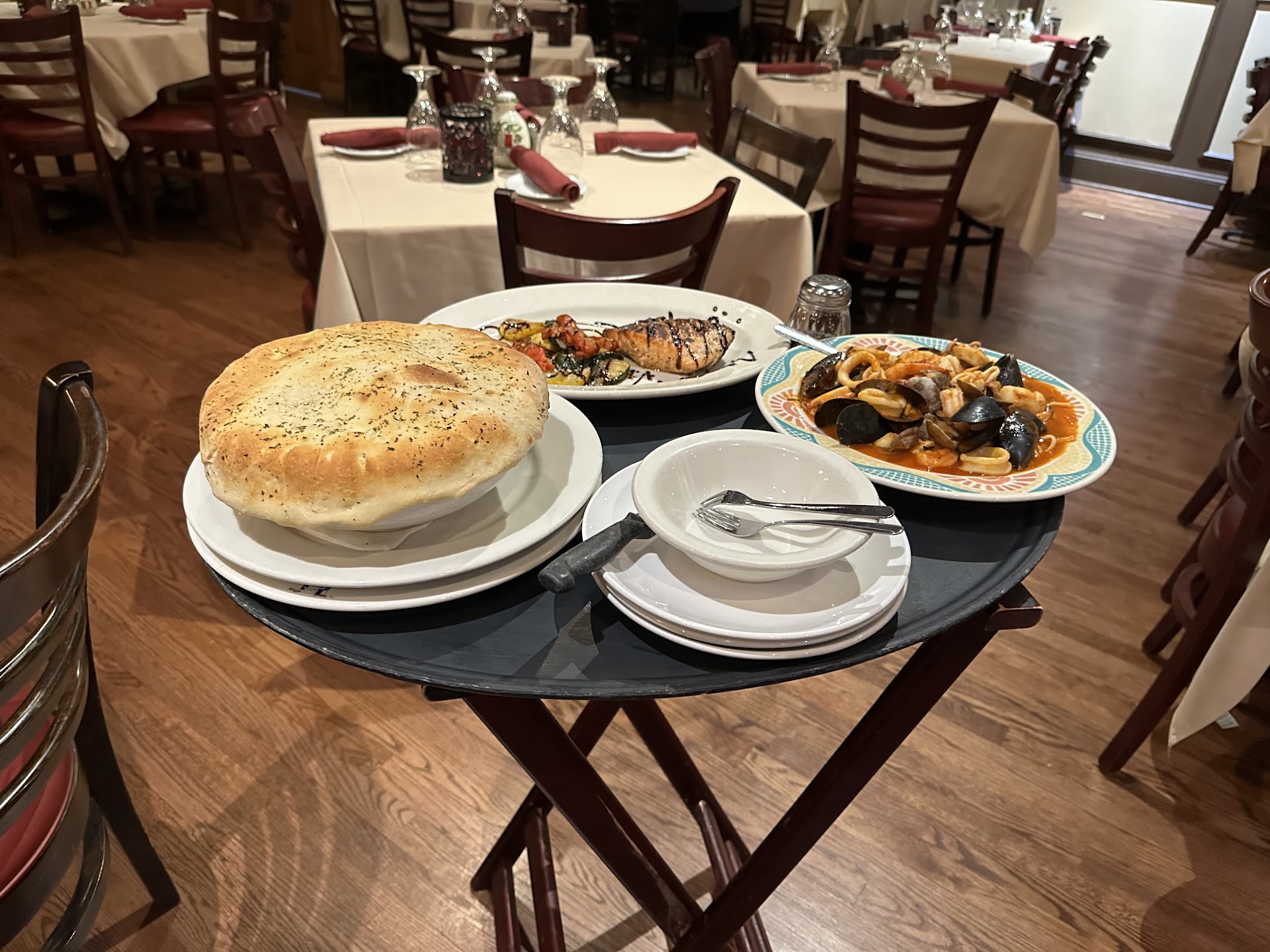 This is real Italian food. Great wood fired pizzas especially the pizza Margarita. It compared to the pizzas I have had in Naples and Rome. The Chicken dishes my family had were great especially the chicken vesuvio. I had the Zuppa di mare which had plenty of fish with very good flavors. The rustic Italian bread with the Olive oil and parmesan cheese were a great start to the meal. I was really digging the ambiance I guess it looks like an old church but was really cool inside with a lot of culture. Not a place for a quick meal. The water/bread/clean up guys were exceptional. Our server did a okay job, definitely not mr. personality but was good. This it by far the best Italian in St Charles and surrounding areas. Old world Italian flavors and plentiful portions. Before this I would have to go to Taylor street . My new home! Would like to see better desert...