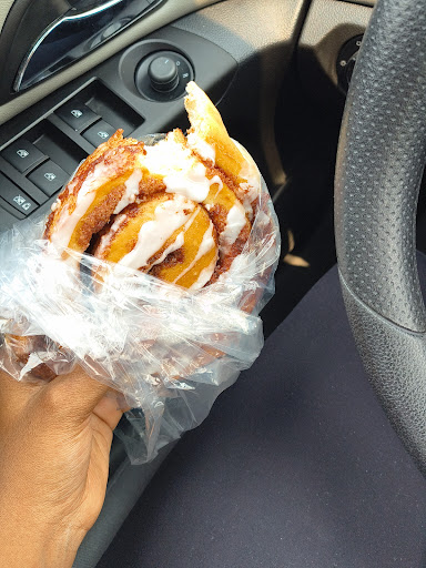 This was my first time visiting as i am from out of town. Staff was super friendly. They could use a little training on packaging though. I went in first thing in the morning which was great because it got very busy very quick! I purchased 3 loaves of bread. 1 of which the lady insisted on slicing even though I didn't want it sliced. She sliced the 1 loaf, split it in half and bagged them in plastic bags then placed them into a paper bag, she then placed 2 whole loaves of bread on top of the 2 half loaves of bread, which caused the 2 half loaves to squish. I also purchased 2 hot, fresh, just out of the oven cinnamon rolls. The employee that was helping me told me they went fast so I had her snag a couple for me. They were placed into a plastic bag, while hot and steamy. The bag immediatly steamed up. (In case you didn't know, hot bakery items that are placed into a plastic bag get sweaty and mushy) because the rolls were hot, the 2 employees didn't want to put the icing on the cinnamon rolls so they put it on the side.... which was a great idea, but the packaging was a little odd! She put the icing in a giant, loaf style, to go container. Smh. I organized all the bread when I got to the car so the 2 half loaves weren't being crushed by the 2 whole loaves, opened the bag of cinnamon rolls to let all the steam out, and placed the loaf style to go container of icing into the bottom of the 1, "way too small for my purchase" paper bag I was given, so it wouldn't spill all over my rental car. I hope it's worth it! Smells and...