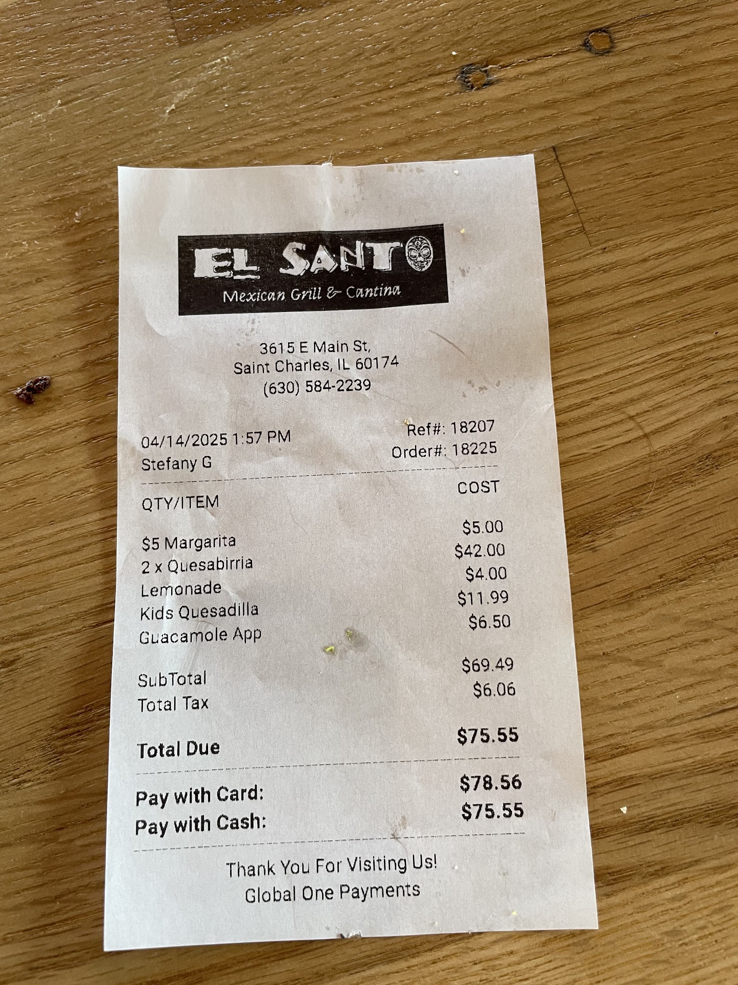 I cannot begin to describe how bad the service was at El Santo last Friday evening (6/13/25). Pretty much every issue you can imagine occurred during and after our visit. The first server at our table stopped by once, and never returned until making an appearance about 2 hours later (and NO, we didnât intend on staying that long). Another waitress stepped in after realizing that no one was helping us, but again disappeared for extended periods, only to show up behind the bar every once in a while.