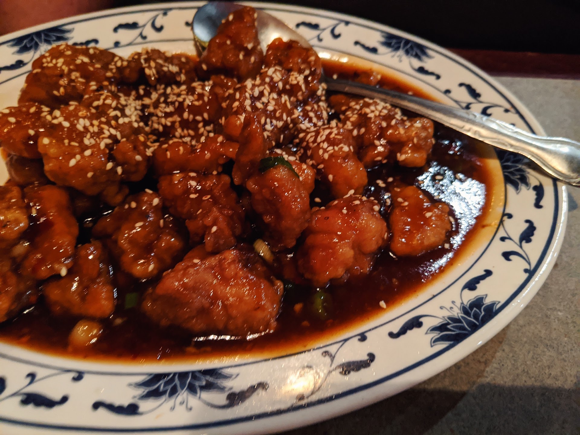 The beef dish comes with celery and carrots, but everything had been way overcooked so the vegetables were limp with no life left in them. My wife and I both agreed that the orange chicken has the appearance of having been sitting around for quite a while - it was overly breaded and the sauce had completely permeated the breading so it was more of a sludge of coating. There were also two large slices of some unidentifiable other meat in with the chicken. Honestly, Panda Express has fresher ingredients and better tasting options - and if I'm comparing you unfavorably to Panda Express, you've done something horribly wrong.