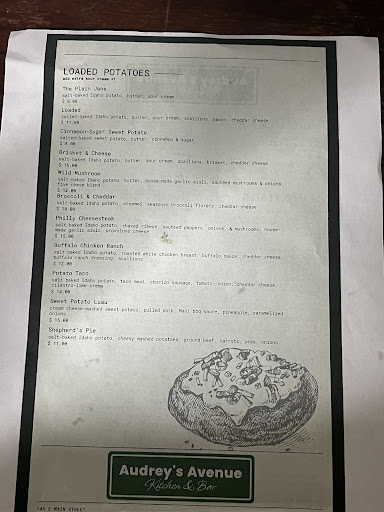 Read moreIf you find yourself in St Clairsville, OH, skip all the chain restaurants and venture into the historic part of town to Audrey's Avenue Kitchen & Bar. It's really charming with a beautiful bar. We were seated very quickly by the hostess Alyssa who was also our waitress and the bartender. She was working several tables, but she was super attentive and friendly. We shared the Mediterranean Salad and the Maui Pork BBQ Sliders. The Salad was beautiful and the Garlic Citrus dressing was amazing. The BBQ sliders were awesome with lots of burnt ends in the pulled pork. The sauce was delicious. The homemade fries were fantastic. We tried the homemade garlic aioli dipping sauce with the fries and it was out of this world. We finished our dinner with a fabulous Kiwi Lime Martini. If you are looking for a fun casual place with a wide variety of salads, sliders, baked potatoes, loaded fries, and a tasty drink menu; please stop into Audrey's Avenue Kitchen & Bar. You will not be...