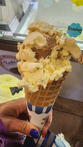 Read moreKirke's has been serving amazing ice cream for years. There are so many options of flavors and large to go containers are also available. There is a lot of indoor seating as well as outdoor with a lovely shaded area filled with benches, a gazebo and small bridge. I got a scoop of peanut batter banana and a scoop of confetti cake batter and my daughter got a scoop of watermelon sorbet, which she said reminded of her of Dolewhip which is a total...
