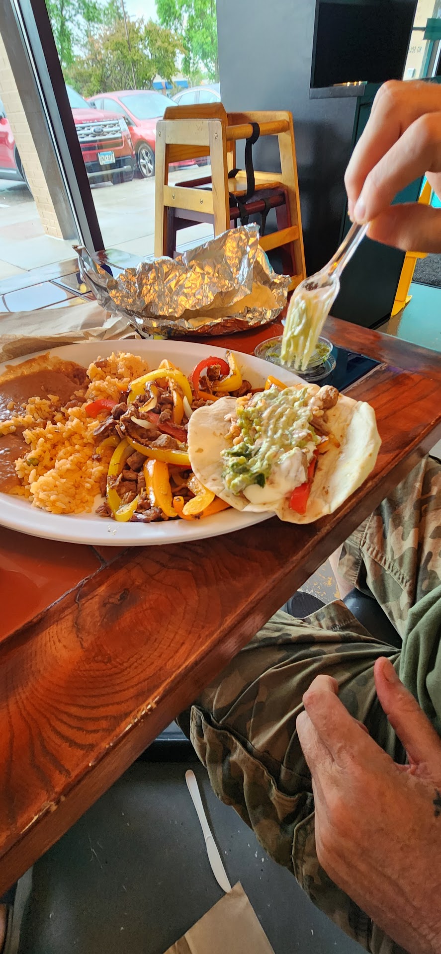 Read morePros: Festive atmosphere. We arrived at a not so busy time and so seating was not an issue. Food was prepped and ready to pick up in a timely manner. Good size menu with many different choices. I ended up with the taco combo which included 3 street tacos, Spanish rice, and black beans. My choice of meat was shredded chicken. The cilantro was crisp along with the onions. The salsas are made by hand. My favorite was the hot, which is avocado, jalapeño, onion, and lime juice. By far the most flavorful of the 3 I tried. My dinner date had the Chipotle grilled burrito with chicken and they raved about how delicious it was. Portions are excellent for giving you that satisfied feeling. Chips are homemade, crunchy, and lightly seasoned, and the queso Blanco was delicious with just a hint of heat. The meat selection is large with your usual of chicken, shredded beef, shredded pork, to soy and beef tongue.