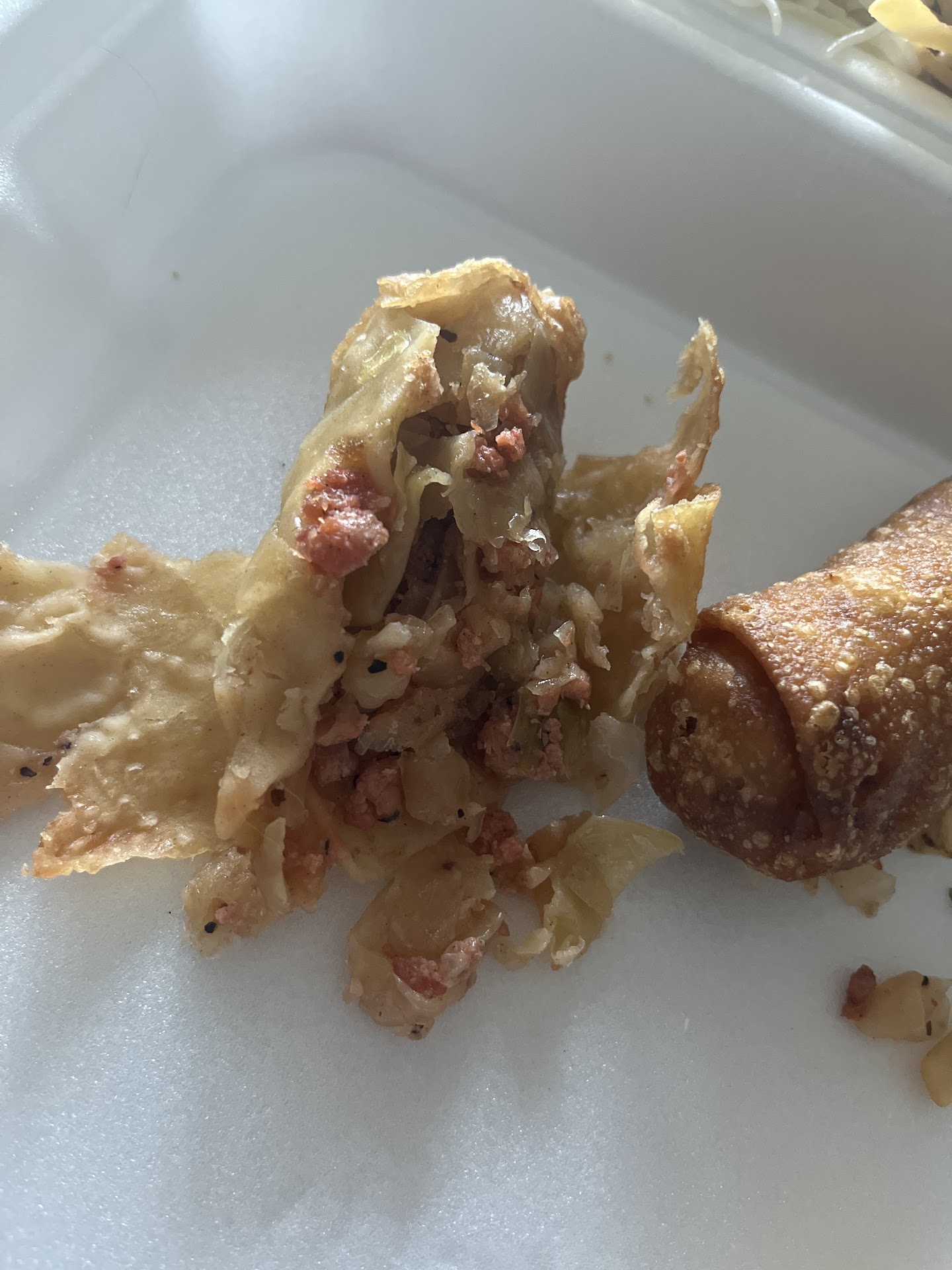 me and my friend have been going to this location for years— it has always been a wonderful experience, nice staff, delicious food, lovely atmosphere. but something about it today was not right AT ALL. we got to-go, and we ordered what we normally do, the crab wontons, egg rolls, vegetable lo mein, general tso chicken, and a few other things. we enjoyed our first box of the wontons mixed with the sugar donuts, and then we opened the second one and filled our plates, we already were weary about it because they substituted the lo mein noodles for fettuccine and it didn’t look the greatest but we wanted to try. i had rice and general tso and it tasted great— but my friend bit into her egg roll and immediately knew something was wrong with it, she had to spit it out and actually ended up throwing up. as she got up to puke i opened up the second egg roll and it did not look like it should’ve, the meat was red looking and it did not smell good at all, like it had some sort of stench, and after my friend was able to compose herself she explained that it tasted absolutely rancid. the rest of the food was pretty bland except for the wontons, broccoli, general tso chicken, and the sauces. for the first time in YEARS this is the first time we’ve had a terrible experience with them, and it’s crazy because just a few weeks ago we went there and it was great! and the noodles were actually lo mein noodles. this experience was enough to make us not really want to come back, and if we do it won’t be for...