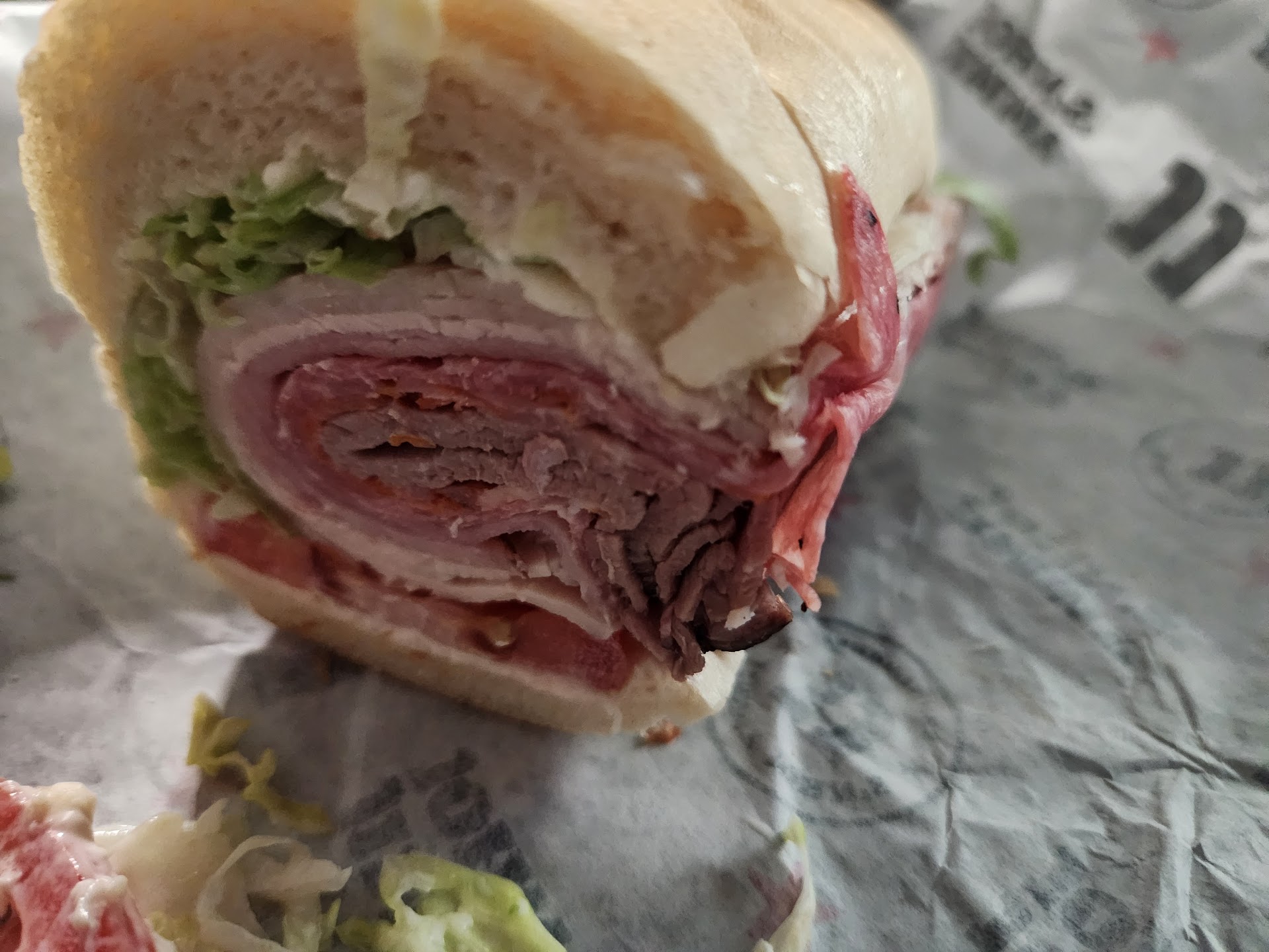 The food however, was on another level. I don't know what the difference from yesterday from any other day was. The food was delicious. My Giant Gargantuan was flavourful. The veggies tasted and felt so fresh. You can hear the lettuce snap and crack with each bite. I can even hear the snap as my wife crunches on the banana peppers they laced on her sub on request. The meats was tender and moist all the way through. It was one of the neatest subs I had. There was no mess afterwards because of how well it was made. There have been times when they gave us subs that you just knew wasn't given any love or care. From meat that probably sat too long and veggies that were just soggy. They even just lathered on mayo as if they were basting a cake.