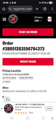 Read moreI'm really confused at what is going on with JJs in the area. Looking at reviews it seems they either have the wrong staff or not enough... but this location is crawling with help inside. There are so many workers it doesn't look like enough room to produce the food! I put in an order for pick up, I had to wait last time so I gave it a few extra minutes and people were putzy driving...I got there after my pick up time... no sandwich. The guy asks my name, I give it... he says, "we'll start on that next. " like?? What? The app says it's done lol like..okay. I get my food within 10 minutes...it seems online ordering needs a brush up cuz these employees can't keep up! Maybe the area needs another JJs- they've got a bunch of delivery cars sitting here too, no one going out. Curious to know how your "freaky fast" business model is hanging on cuz is anything but...