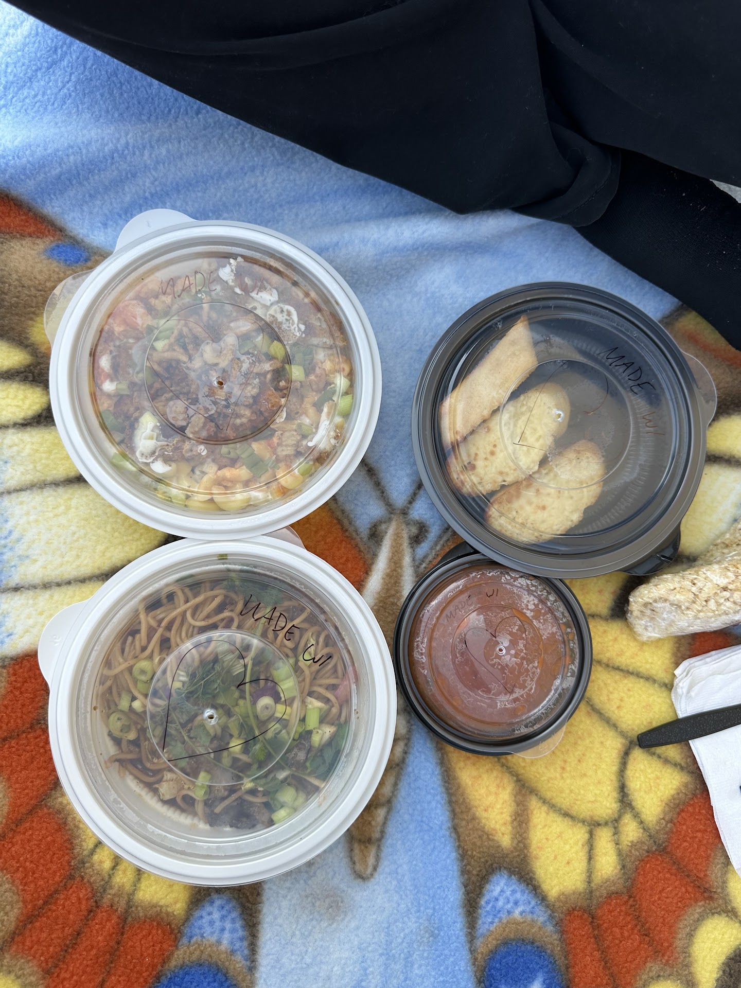 I didn’t remember to take pictures right away but you can tell by the picture of the Mac & cheese that my grand daughter made a big dent in it before I got the picture. I had the Japanese noodles with tofu. The tofu was somewhat dry and tasteless. The rest of the dish was fine.