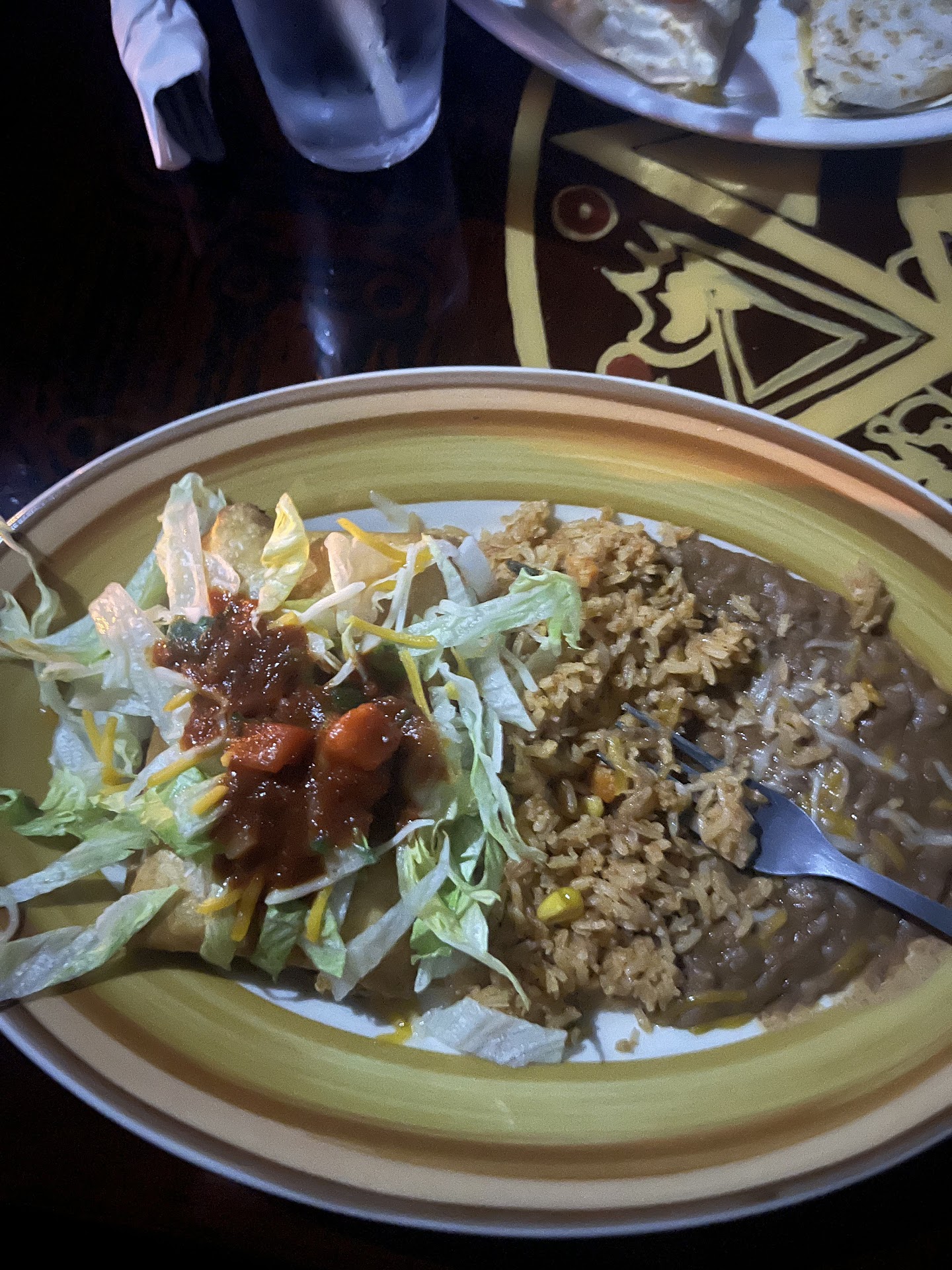 The others ordered burritos with rice and beans. Verdict: “meh.” The beans were straight from a can, and they tasted like it.