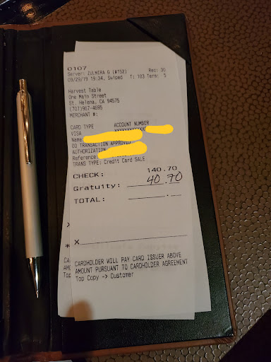 The Harvest Table: Our expectations were not met whatsoever compared to what the Harvest Table used to be and provide. We had dinner and breakfast at the Harvest Table during our 3 night stay. For dinner, the fixed menu was $60 per person and $22 for wine pairing. As I will explain in detail following this statement, dinner was a HUGE disappointment considering we paid over $450 with tip after additions. Overall, it seemed as though the food was based on whatever was being served at the wedding on site that night. We were the 'leftovers'. Overall, the food was not fresh and of poor quality. To start, the soup was cold. We actually googled to see if that type of soup was supposed to be served cold. It wasn't. The salad was just greens with a few toppings with some vinaigrette. Nothing special. For the main course, the halibut was served with a sauce that masked the 'fishy' and not fresh taste. The steak was not a good cut and was served medium with fat around the edges. Not palatable. Potatoes and veggies included with both dishes were cold and hard. Applebee's could have provided better, which says a lot. The wine that was served seemed as though it had been sitting in a bottle and oxidized past its prime. I had to turn it away and ask for a new bottle of something comparable to be opened. How does this happen in NAPA!? Our waiter was the only thing that made us provide a tip. He was so sweet and nice and it seemed as though he had no say in any of the food or wine. He simply served what he was given by the kitchen and bar.