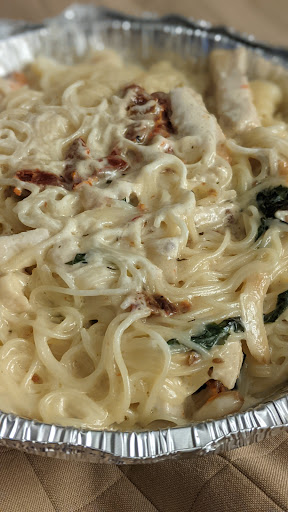 The Creamy Angel Hair pasta with chicken was excellent. It was a great blend of flavor between the parmesan sauce, sun dried tomatoes, and basil. Chicken actually had flavor so it's a must add. I also added a hefty amount of red pepper flakes which helped...elevate the flavor. It came with side of garlic cheesy bread that would make any lactose intolerant individual cry with glorious anticipation.
