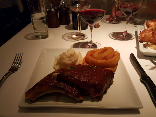 FOOD: Excellent. We had the calamari (very tender, perfectly battered; a little spicy, so avoid if you don't like any heat); split a small portion of mac and cheese (good and rich, but perhaps a little overpriced); then went on to entrees of filet mignon (perfectly cooked, juicy and tender, decent size and very nicely priced) and zinfandel-braised lamb shank (also perfect size, price, and flavor.) The portions were large enough for us to take half home to make room for a wonderful dessert, which was butterscotch pudding in a homemade waffle cone shell.