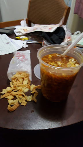 The food was tasty, not overly salty and generous in portions. And for all that I ordered, the price was very reasonable. Pork Foo Young w/a generous amount of gravy~ A+ Kung Pao Chicken w/no carrots and celery~ B Shrimp with noodles~ B ( I asked for rice noodle instead of the Chow Mein noodles and received a dish very close to Filipino Pancit. Chicken Wing apps~ Had a distinctive, slight curry flavor B