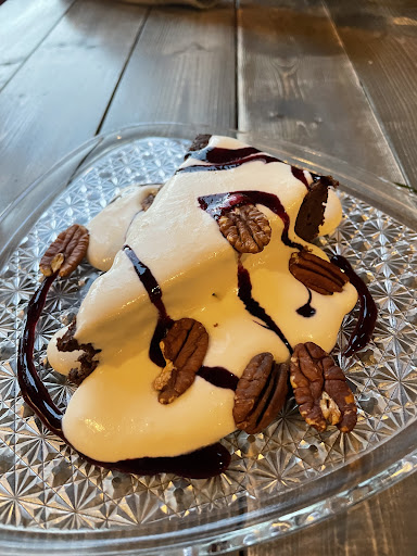 A hidden gem nestled in downtown St. James MO. The menu and bar items make it clear that elevated dinning and drinking are the goal in a quaint and comfortable environment while not getting to full of themselves. The bread board app included an olive oil and balsamic dipping sauce that while very tasty could have used a little “ something “ to make its flavor stand up to its appearance. I will say that my taste in olive oils runs pretty rich, the selection here had an excellent feel but was a little less fruity than I prefer. Maybe some roasted garlic?
