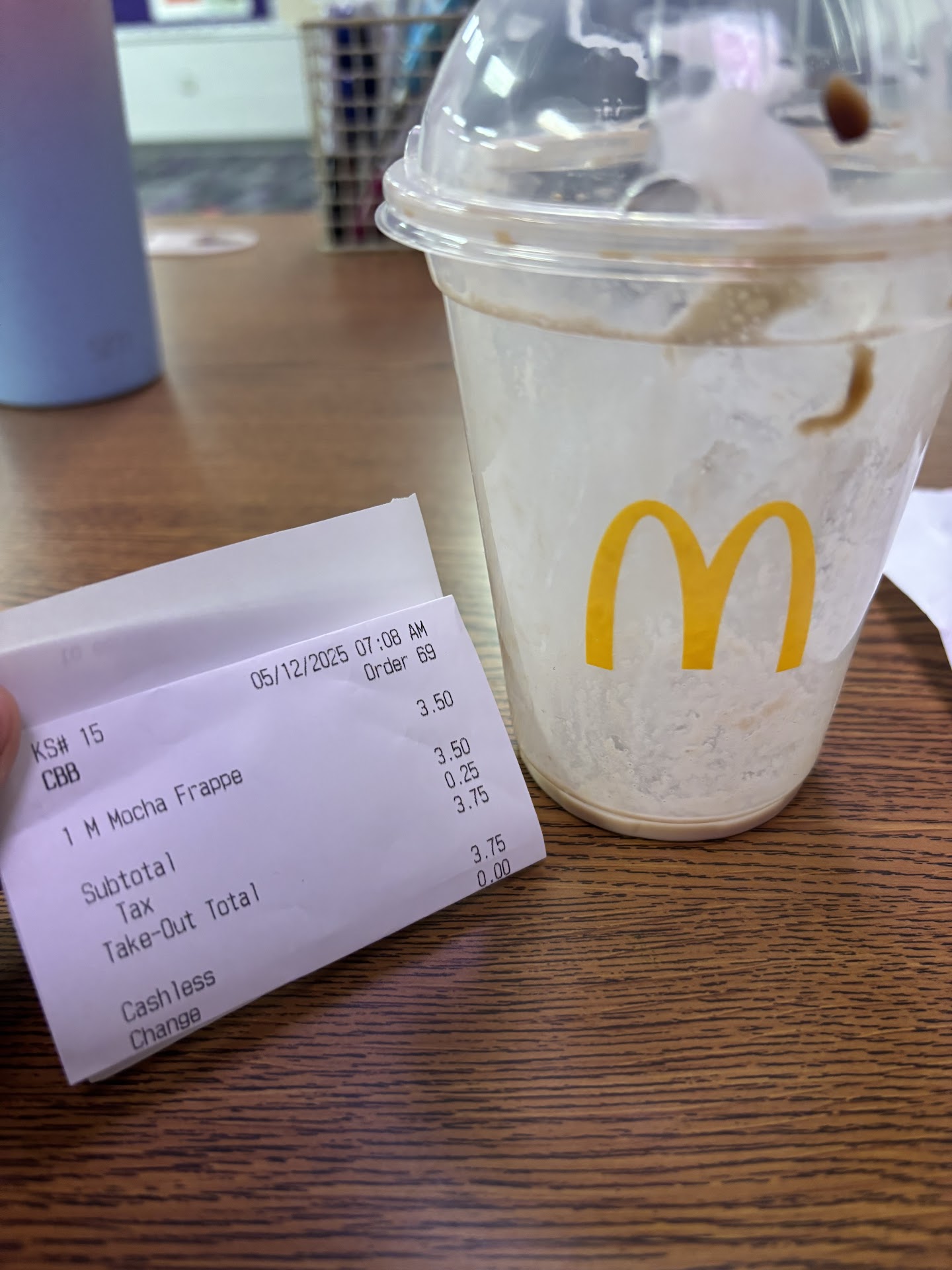 Read moreI do not normally leave Google reviews and I am not a McDonalds regular, but I had a negative experience on May 12, 2025 at 7am. I ordered a medium mocha frappe. When I pulled up to the window, the girl thought I had ordered a breakfast sandwich. No big deal; working fast food can be overwhelming, especially working drive through. I told her that was not what I ordered, and another woman refunded my order. After going back and forth with the girl about what I had actually ordered, I was charged with a medium mocha frappe, but was given a small mocha frappe. Here is the picture and receipts. I am disappointed that my order was wrong even after correcting the girl at the window several times and I was overcharged for what I received. I just took the small drink and left as not to inconvenience the girl anymore. I will not...