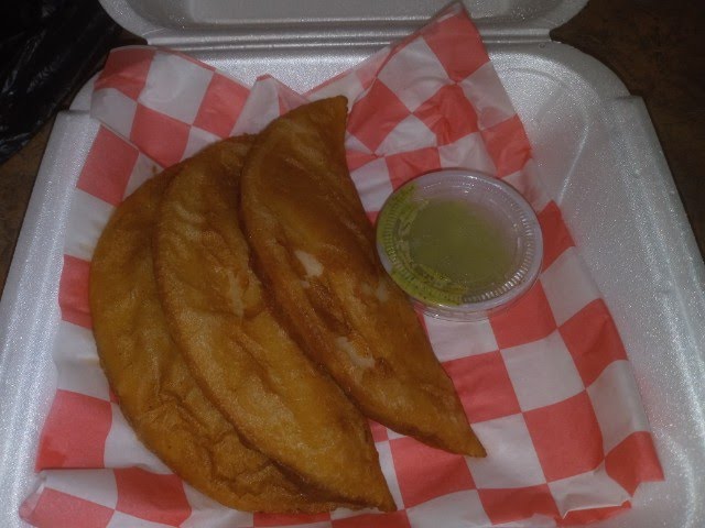 I didn't realize arepas were so large! I think I'd tried a small one at Festival of Nations that was all contained in a small round piece of dough. But this was a piece of dough the size of a saucer, split open and stuffed with chicken, black beans, plantains, and crumbled white cheese (queso fresco?). I got a side of tostones with crema, and the cilantro sauce on the side. Between those two items and a delicious Cuban coffee, I was positively stuffed when I left.