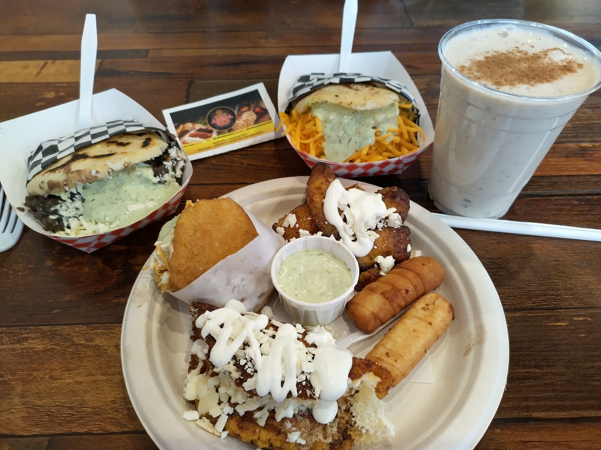 Fantastic little Venezuelan eatery. Food is flavorful, service is friendly, decor is ethnic but not in your face (picnic tables, a few masks and hammocks on the painted white walls). Clean food, clean dining area. Prices reasonable. Food takes a little while to appear as each table's order is prepared as requested. Vegetarian options available (and are very tasty!). Eaten here twice (dine in both times) and came away satisfied with leftovers both times. This is not a high end restaurant but a casual eatery with really yummy, affordable home style ethnic food. The only reason I don't want you to patronize this establishment is because I don't want to wait behind you in line to eat this delicious food. So please come and offer this restaurant your business when I am not around! Notoriously hyper critical boyfriend gives it a four star review. Edit 8NOV2024: make sure that you try the lunch special chicken soup. The cubes of homemade cheese made the dish absolutely exquisite. Boyfriend now regards this out of the way place as his go-to for when I treat him to...