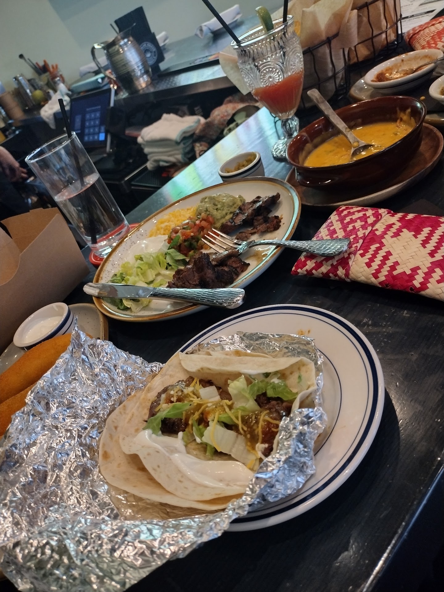 Iāve been here three times now and always order the fajitas. I love the atmosphere and always receive great service. This last time I had Mia maybe Mya as our server, Iām not 100% sure the name is right but she was around 5 ft short brown hair and friendly smile and demeanor. She was very attentive and offered many suggestions and ways to improve our meal. The fajitas are a hit every time and the only really reason I go here. I do not mean for this to be a bad review because I always have a great meal here but I personally prefer to eat at local spots that are cost friendly but Iām sure because of the location they cater to their clientele with higher financial means that donāt mind paying for things like chips and salsa that usually come complimentary at most Latin American restaurants. Even a side of salsa for the fajitas is additional cost. They also do not provide rice and beans with the fajitas Iām not sure about the rest of the dishes. Mexican food is not that expensive to make as I am Mexican and grew up buying and making similar dishes. I will say their fajita meat is lean and very well made and you can tell it is a better quality than their competitors but the rice and beans are still the same cost so maybe theyāre making up for the cost of the meat with that additional cost for the sides. The fajitas are about $29 for one person vs $53 for two and honestly I feel that the serving portion for one is significantly less than the average single order at even a nicer location in Texas, which is where I was born and raised. My advice is to order the double if youāre two people as the portion is more suitable than the individual. I shared a double with someone and left full but when I ate a single by myself I left hungry. The same for the margaritas if you only want one and are considering two just go for the pitcher because itās the better deal. The margaritas are very tasty and you can tell there is tequila but for the price it wasnāt the best I had and I didnāt think the price matched the quality. I will continue to go in the future if Iām invited but I wouldnāt seek this place out as there is more authentic Mexican food with just as good fajitas but I appreciate the service I am given each time and the nice experience. Also they only have one bathroom for all genders to share so make sure you arenāt needing the facilities when you arrive cause I had to wait 10 minutes for the restroom and it was the same person in the whole time so that was very inconvenient while...