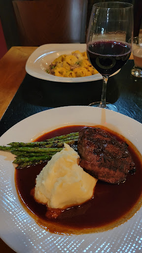 I had the goat cheese appetizer. While fairly good, the goat cheese had just come from a fridge so it was hard and unspreadable. It broke apart and was hard to mix with the onion marmalade and pistachios with it. The flavor was okay but the restaurant should strive to bring the cheese to a spreadable temperature before serving.