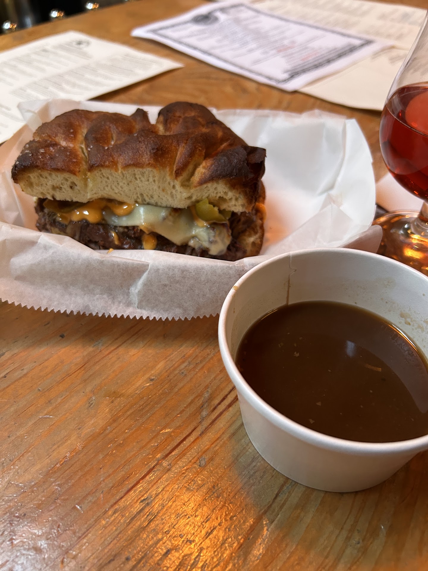 Read moreI broke my pork fast for their prosciutto sandwich! Along w volpi prosciutto It had basil almond pesto, fig balsamic, fresh local peaches thinly sliced w ridges, spinach, and ricotta burrata spread! And they put all this in between fresh baked bread that was a crispy crust encasing that light deliciousness. It also came with house made chips that were crispy w just the right tinge of saltiness. My sandwich came out quickly and was perfect..it is located inside perennial brewery so there are plenty of unique local beer options. I opted for a frosties root beer. If you like gramaphone you will...