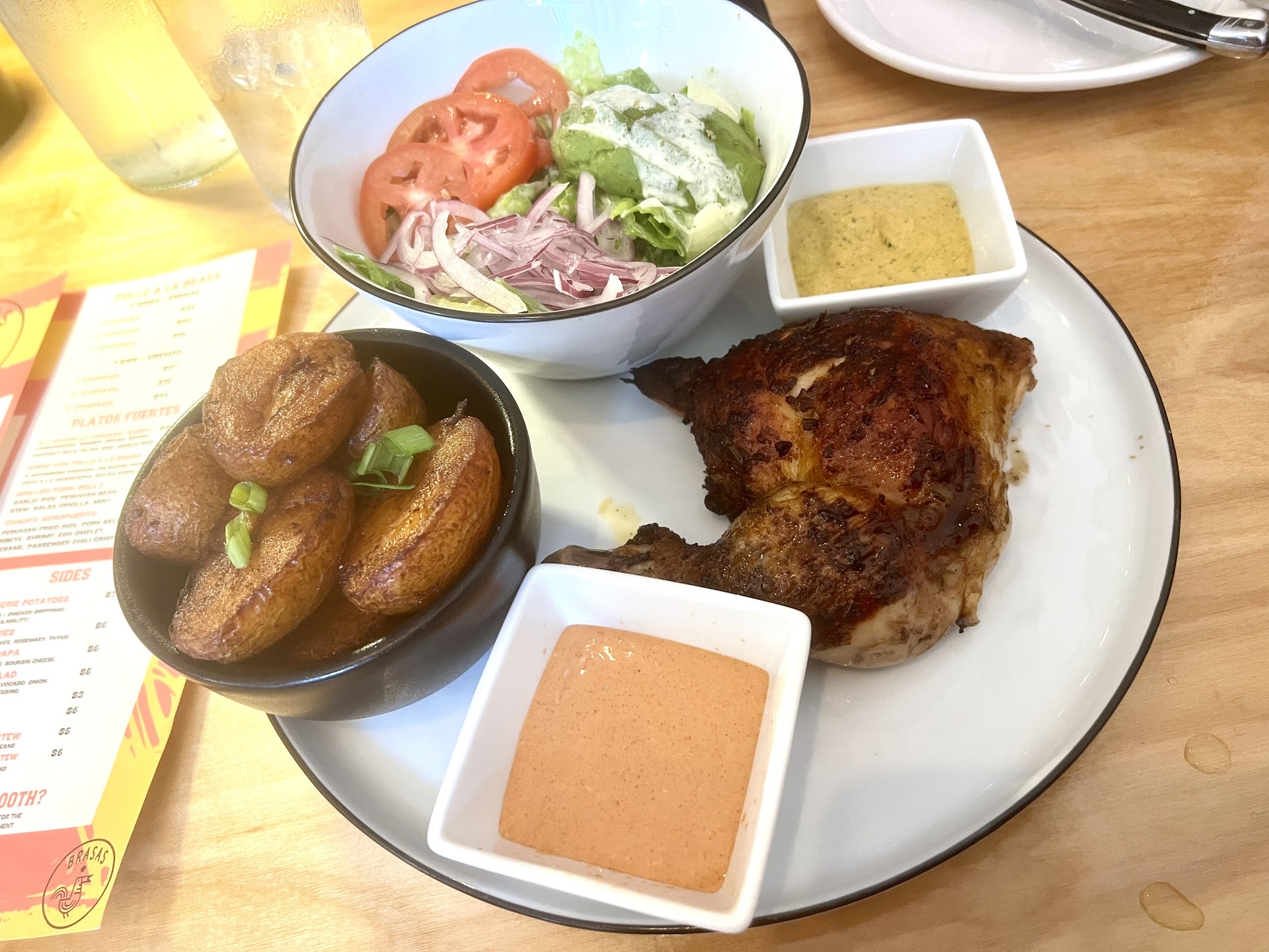Read moreBrasas is a place I didnât know of until I was assigned to cover photos for them. I am glad I did. Itâs a nice cozy place and the staff were so kind and friendly. After done with my business in Beasas, the food looked great and I had to order their main dish which was the Peruvian rotisserie chicken that came with 2 sides (garlic rice and fried plantain) were my sides and it came with three different cremas. (Mild, spicy cilantro, and spicy ). Speaking of the latter, the mild was good and it tasted close to ketchup+mayo , the spicy cilantro was really refreshing and flavorful, and the spicy one had lots of flavor packed in it as well. As good these cremas were, I didnât use much of them with the chicken, I did with the rice and with the plantain which believe it or not, it worked âat least for meâ. The garlic rice was cooked well and had a subtle garlic yet it was flavorful. The fried plantains were on point. Caramelized to perfection and they were sweet and melted in your mouth, when dipping them with the crema, the contrast creates a great harmonious flavors. Now going to the main star of the meal, the chicken. The main reason I didnât go on with eaten kg the chicken with the cremas is that the chicken was filled with flavor, well seasoned and the cooked to perfection. I had the dark meat and it was so juicy and tender meat. The flavors were beyond the skin part unlike lots of people other places where you only find flavors on the skin and not the meat under. Over all, a must try restaurant, I will be back and have to try other menu items and recommend chicken lovers to come here and they will be in...