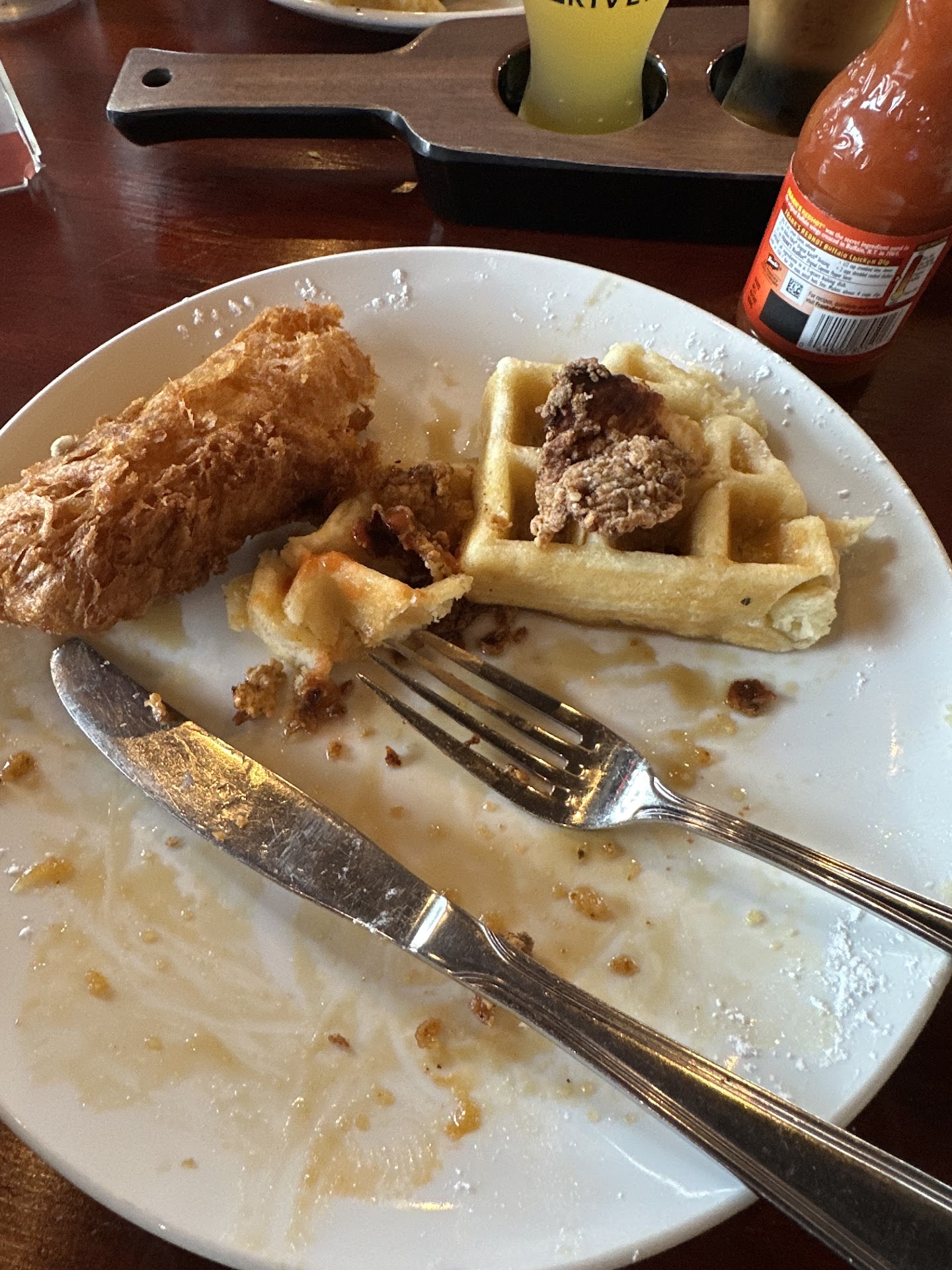 We got drinks about 15 minutes later, a tasting flight for both of us. We both really enjoyed the Homestead Cider and the Brewer's Choice was very unique. It was a little too hoppy for my taste, but the hubby loved it.