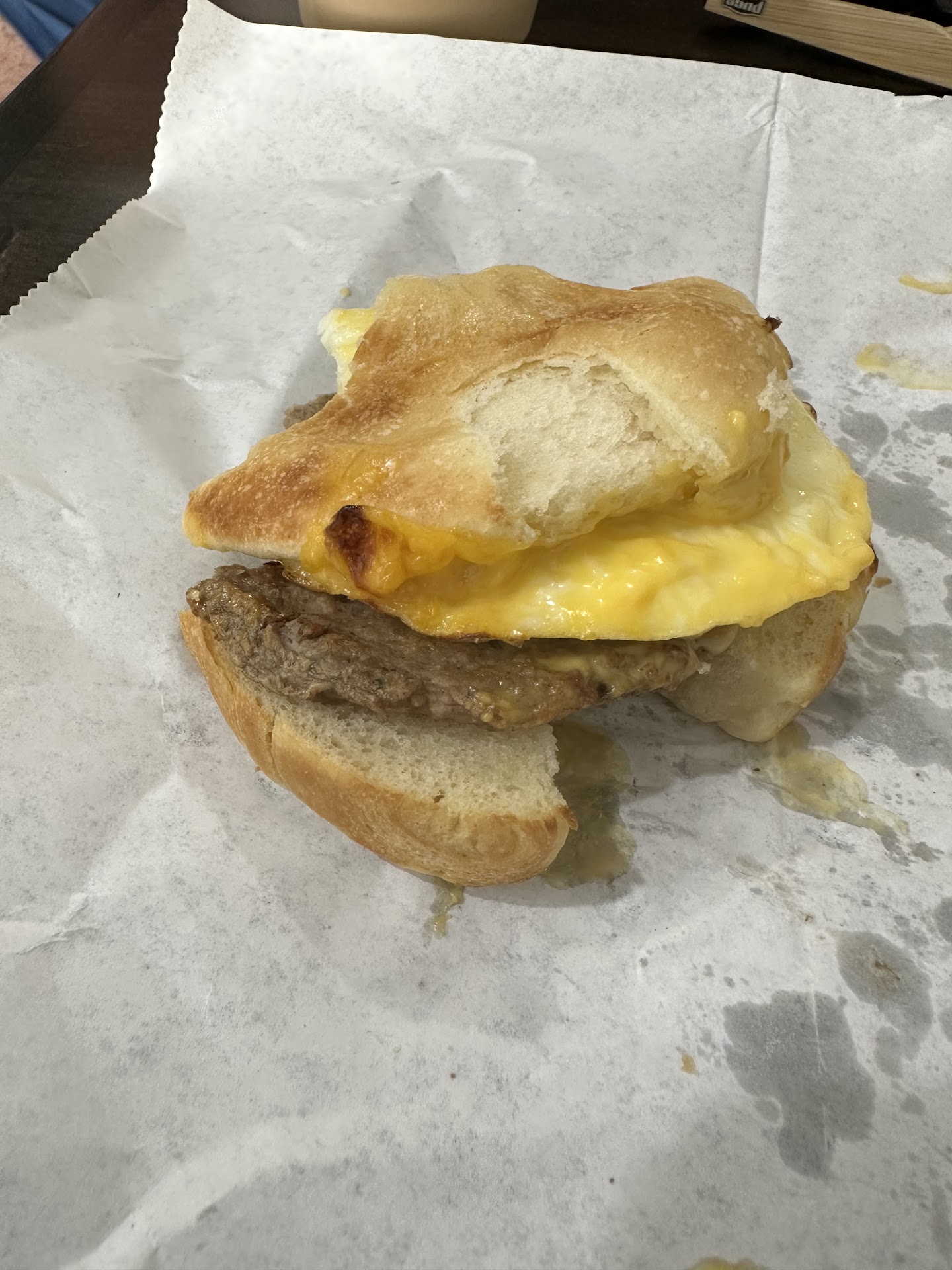 My husband said his coffee was decent however my hot latte came with about an inch of foam on the top and the breakfast croissant was the saddest, least flavorful sandwich and the sausage looked dry and crusty.
