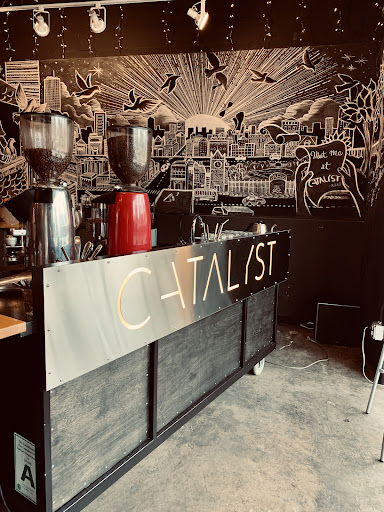 Think the planet is spinning a little too fast today for you? Want to step off for just a moment and collect your thoughts before stepping back into the fray? Then head over to Catalyst Coffee Bar. Inside you will find yourself in a place that doesn't only serve hot and cold coffee drinks, but a place where Art is everywhereâŠon the walls, in the coffee itself and sometimes even on the sidewalk outside. A wonderful representation of Regional Artistâs, possibly your own neighborsâŠshowing their creativity at its best through all-juried Art exhibitions alongside Art Saint Louis who owns and operates Catalyst Coffee Bar. Youâll find comfy seating, areas to gather a group for a meeting, inspiring music along with the melodic sounds of coffee being tamped and the beckoning call of the steam wand inviting you to stay longer. Because itâs all located in an urban downtown setting, the mix of people at Catalyst Coffee Bar is a wonderful showcase of diversity that celebrates personality and lifestyle. This is a cozy environment that allows for inspiring open conversations with strangers who are all brought together by a charming ambience of creativity. Catalyst Coffee Bar has free Wi-Fi, is dog friendly and is a casual landing place that invites you into a sophisticated warm sense...