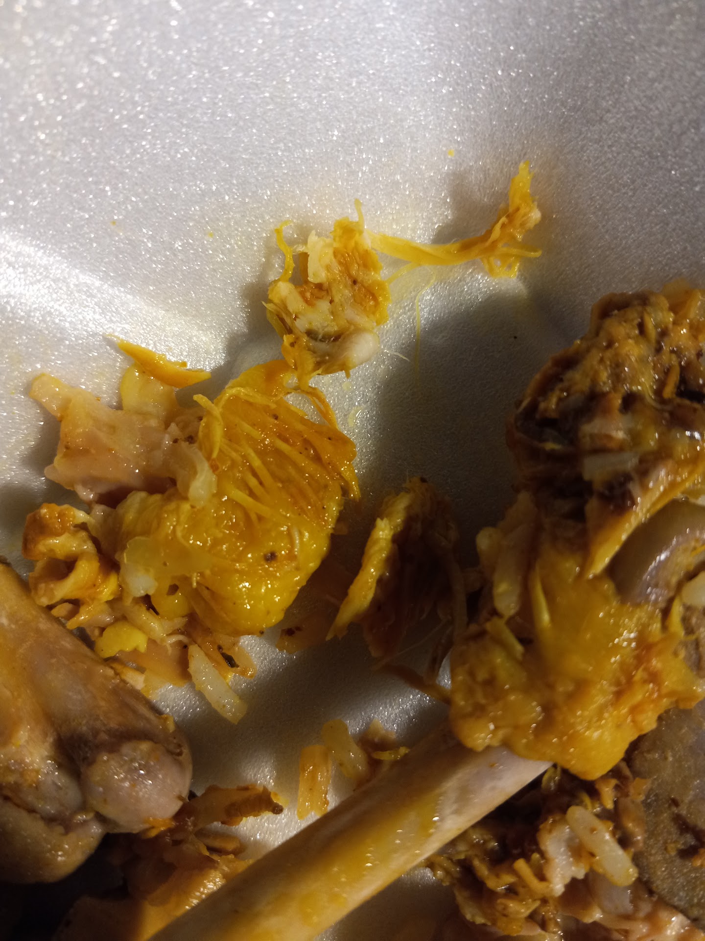 I thought that in Caribbean cuisine they 'wash' or rinse the chicken first, but clearly not here. As I inspected the meat, it was completely full of bone fragments and the unpleasant scum around them, cooked blood / bone marrow / organ meat etc. Whoever chopped it up had a very dull cleaver, and just threw it in the pot without trimming anything.