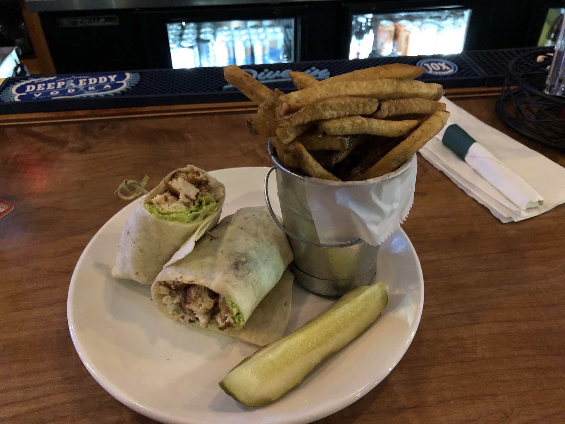 A pretty typical local bar and grill, however the food was definitely better than your average “bar food.” We went for lunch, so I cannot speak to what it is like for dinner/at night. Waitress’s were very nice and working hard, however it was clear they were short staffed. My wife and I are both very patient and understanding of that situation so it wasn’t a big deal for us.