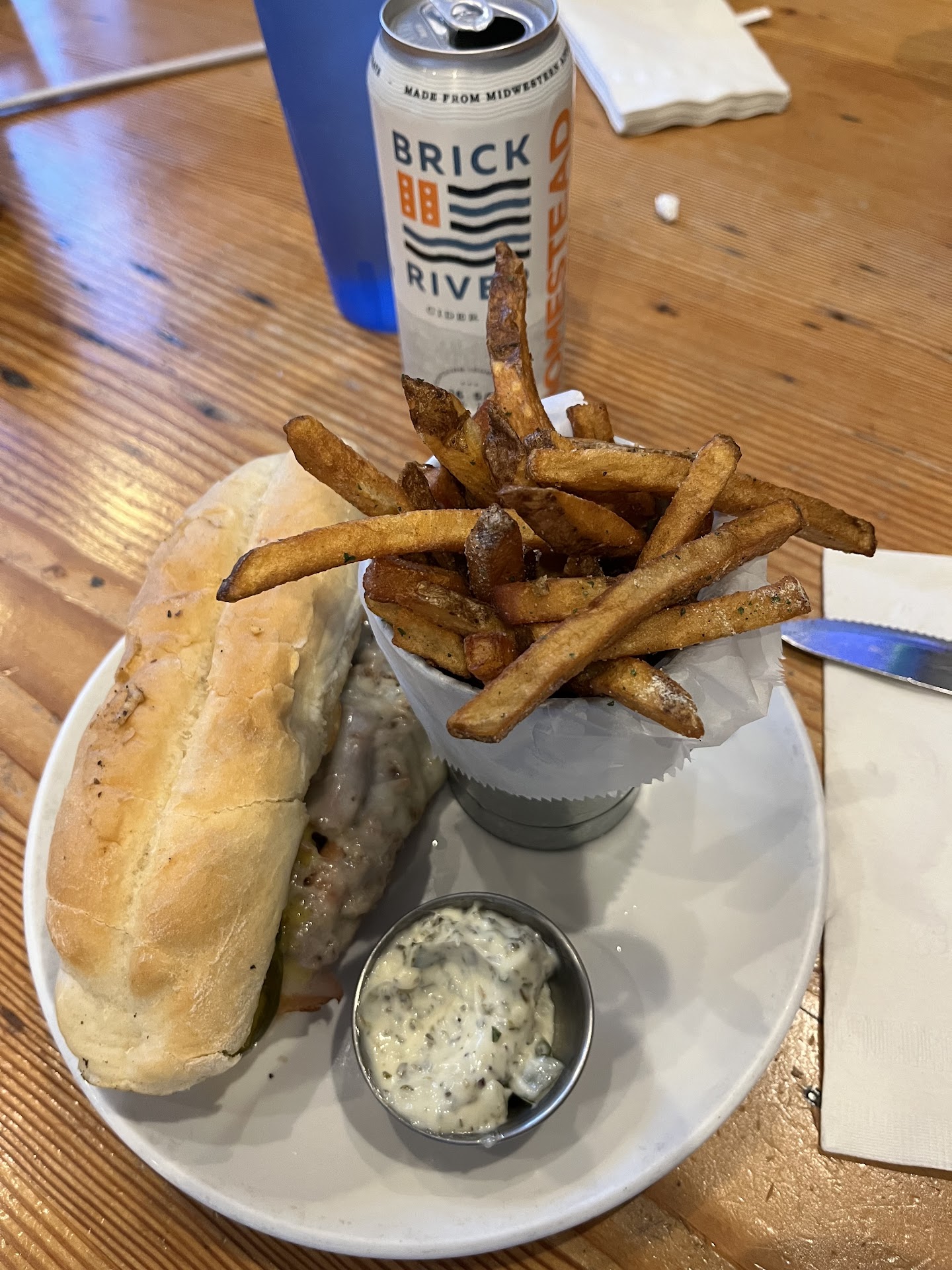 Read moreI visited here the other day with my husband and my uncle, along with his friend. We had to ask for literally everything. I'm not kidding. No one greeted us after we sat for about 6 minutes or so. We had to ask for service, menus, straws, silverware, refills, and the bill. Literally everything. An employee was sitting at the bar eating chicken, and the bartender wouldn't look my direction when I initially approached the bar to ask for a server to visit our table. When I asked, the guy eating chicken said, "My bad," and I laughed and asked him if he was on break. Idk what that was about. Soon after, a server came by and said she was taking another tables order, and that's why she didn't greet us. She definitely had a rude undertine about it. Then she left, and a few minutes later, another server came over and handed us menus after we asked for them. She asked if she could get us anything while none of us had menus. The service was terrible. The food was mediocre. My husband got a smash burger, and he said it was really good, and we all agreed the fries here are delicious. My uncles blackened chicken was lacking flavor. That makes no sense because Cajun blackened seasoning should be very flavorful and spicy. My Philly cheesesteak was a little overcooked, but more importantly, the sandwich was dry, and there was a lot more bread than filling. My uncles friend ordered a cheese quesidilla of all things. She didn't say a word. I'd imagine it's hard to mess up a cheese quesidilla. I've eaten here inside once before a few years ago, I don't remember what I ordered, but I remember thinking it was just ok. Around that same time, my husband and I ordered burgers to go a few times. The 1st couple of times, everything was really good, but then they weren't good anymore. I guess they have good burgers again, according to my husband, but I'd rather go to Stacked or...