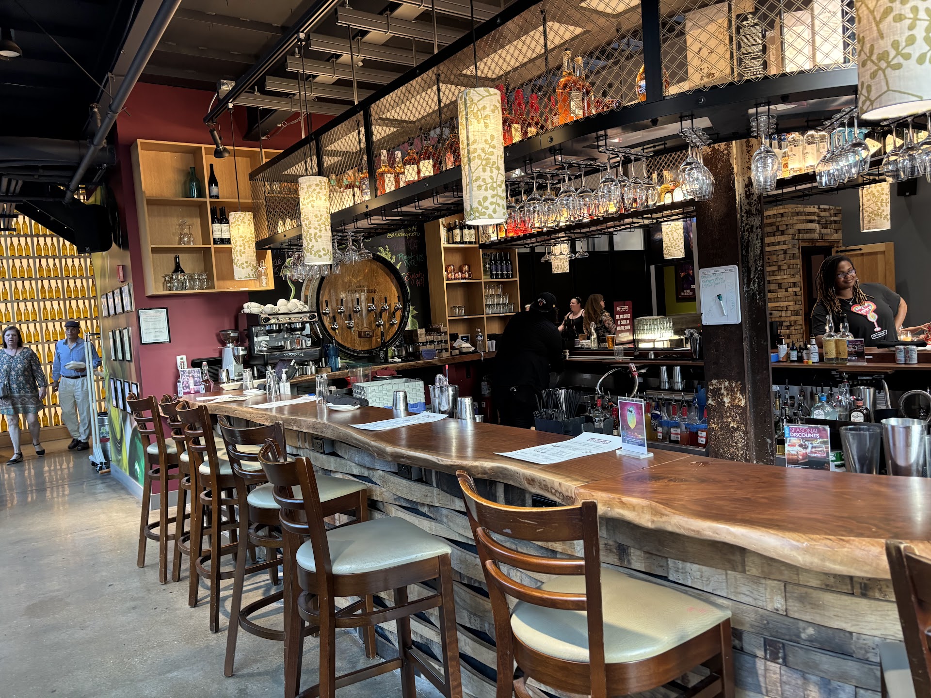 Read moreI am not sure where to start. My wife and I went to a closed event. The total cost for the evening was $300 (including tickets). We opted to pay for seating at the bar due to cost and accessibility. Other options would have cost more and have been on the floor at low-top tables. Based on what we saw, those individuals were crammed in like sardines. At first, we were happy with our decision to pay for seating at the bar. However, our experience will keep us from coming back a second time. The food was... food. It wasn't bad but it was by no means great. The wine was subpar. Take that for what you will. I am no wine connoisseur. Wine by the glass was roughly $5 and $40 - $70 per bottle. Cocktails and beer ranged from $9 - $16 per drink. At first glance the venue is very nice, and the staff seemed friendly. Once the seats were filled by the remaining ticket holders, that changed. Keep in mind, you had to pay for tickets to be at this venue for the evening. This means management knew the exact number of guests attending the event. There were two bartenders total serving and making beverages for the entire venue with 5 - 8 wait staff taking orders from the guests sitting at the tables. They could not keep up with orders nor the demand. Their soda lines went down at the beginning of the night and there was none for the remainder of the evening. If you wanted something other than wine or beer, you were SOL if your requested beverage or cocktail used any carbonated liquid. I know from experience that bars can be on the noisy side regarding operation. My wife and I expected that. Then again, we did not expect the wait staff to regularly argue with the two bartenders about prior and current drink orders behind us. Non-stop. Due to staff not keeping up with the orders, you had customers coming up to the bar trying to place their own drink orders, essentially cutting in-line, and toppling the whole system. Table guests order from the wait staff and bar guests order from the bar staff. It's a simple and easy system as long as your customer base isn't entitled beyond description. It didnât help anyone that last call was almost an hour before the event was over. This isnât a sporting event that has 20,000+ patrons and you need to get people out. This is a âwine bar.â To sum things up: the venue needs to communicate with its patrons the system they have in place. Either thatâs via signs or at ticket purchase. Next, know the correct number of staff you need to cater to your guests. A third bartender would have made a huge difference with the demand but also maxed out the space you had available behind the bar. Two bartenders taking and making orders for the floor and one for the guests sitting at the bar. Finally, get your wait staff in-line with your bar staff. The divide was obvious. I am surprised that this is an established and franchised venue. Our impressions would have made us believe that it was something new and never done before. I guess, if you spend $300+ dollars for an evening of entertainment, you expect better and would get better anywhere else. I feel sorry for the guests that spent more than we did out...