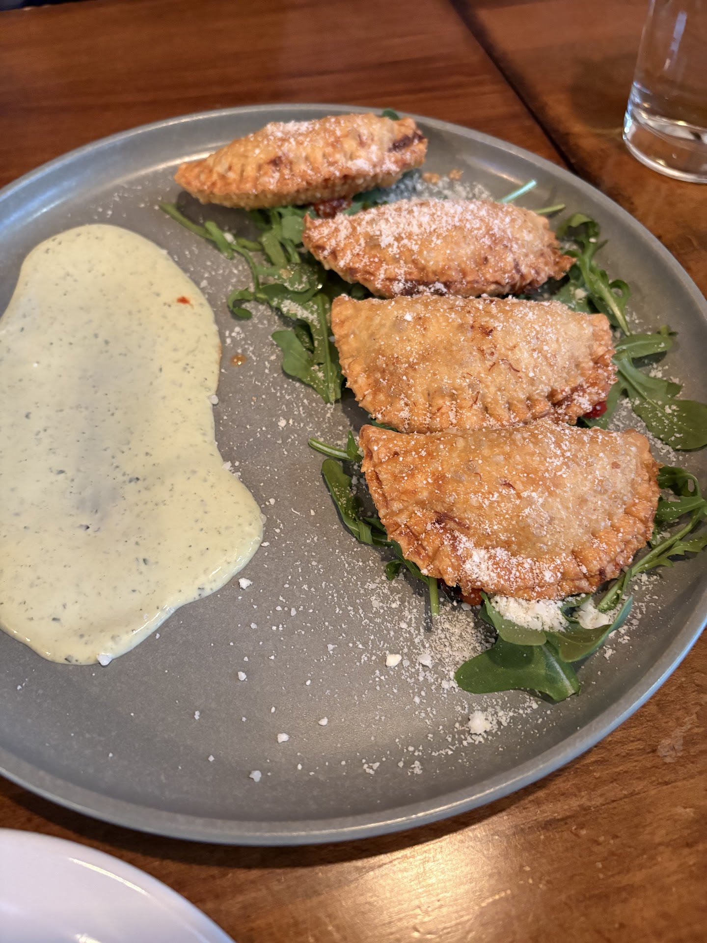 Ā Ā Ā Read moreReservation for 2 and upon arrival promptly seated. Started with a Bourbon Smash for the cocktail and was not happy with this. Server was kind to switch me out for a glass of Pinot Noir and explained that the cocktail was one of those canned mixes. Pass on the canned cocktail. Starters of Brisket Ravioli, which were very tasty and the portion size is ample, enough for 3-4 people. Tried with both sauces, the Goddess and the Marinara...the Marinara wins here. The Baked Potato soup was quite tasty, I rather enjoyed the flavors and the depth of the soup. Crispy Chicken Sandwich with Parmesean Fries for the entree. This fell a bit short for me due to the chicken breast was smaller and thinner than should have been given the size of the bun. It was cooked and seasoned well; not dry. My friend ordered the Salmon dish, which she raved about and cleaned her plate. Dessert... Chocolate Peanut Butter Cake for me, moist and not too dense. Would have been amazing if it had been warmed up a tad to take the chill off. Service was great, very attentive, kind and accommodating. Ample seating and they have a covered patio. We were seated inside the small dining room, which...