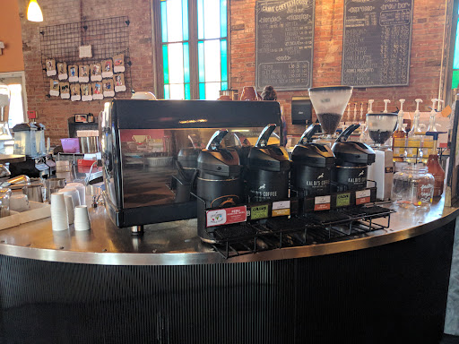 Read moreThis place is beautiful, sweet and convenient. It’s Kaldi’s coffee products, coffee specials that rotate monthly and an array of breakfast, lunch, and non-coffee beverage options. Lately I have been grabbing oatmeal (includes fruit, maca powder, hemp seeds and pecans) and an iced latte. I see lots of students ordering frappes and bagels, too. Their lunch menu starts at 11am. Another plus — they have 20oz coffees. The staff are all helpful and kind but occasionally there is only one person working, but I am never in a rush so it doesn’t bother me. A note about accessibility — the front door of the church/cafe has stairs, but there is a side door that leads to the patio. I believe you would be able to navigate a stroller or wheelchair using that entrance. There is lots of room inside and outside to have a seat and enjoy your drink, your book, or use the WiFi to study. This feels like having our own secret Kaldi location. I’m really grateful they’re here. The website says they are non-profit and while I don’t 100% understand how that impacts their model, I hopeful I am putting my daily coffee habit to good use.