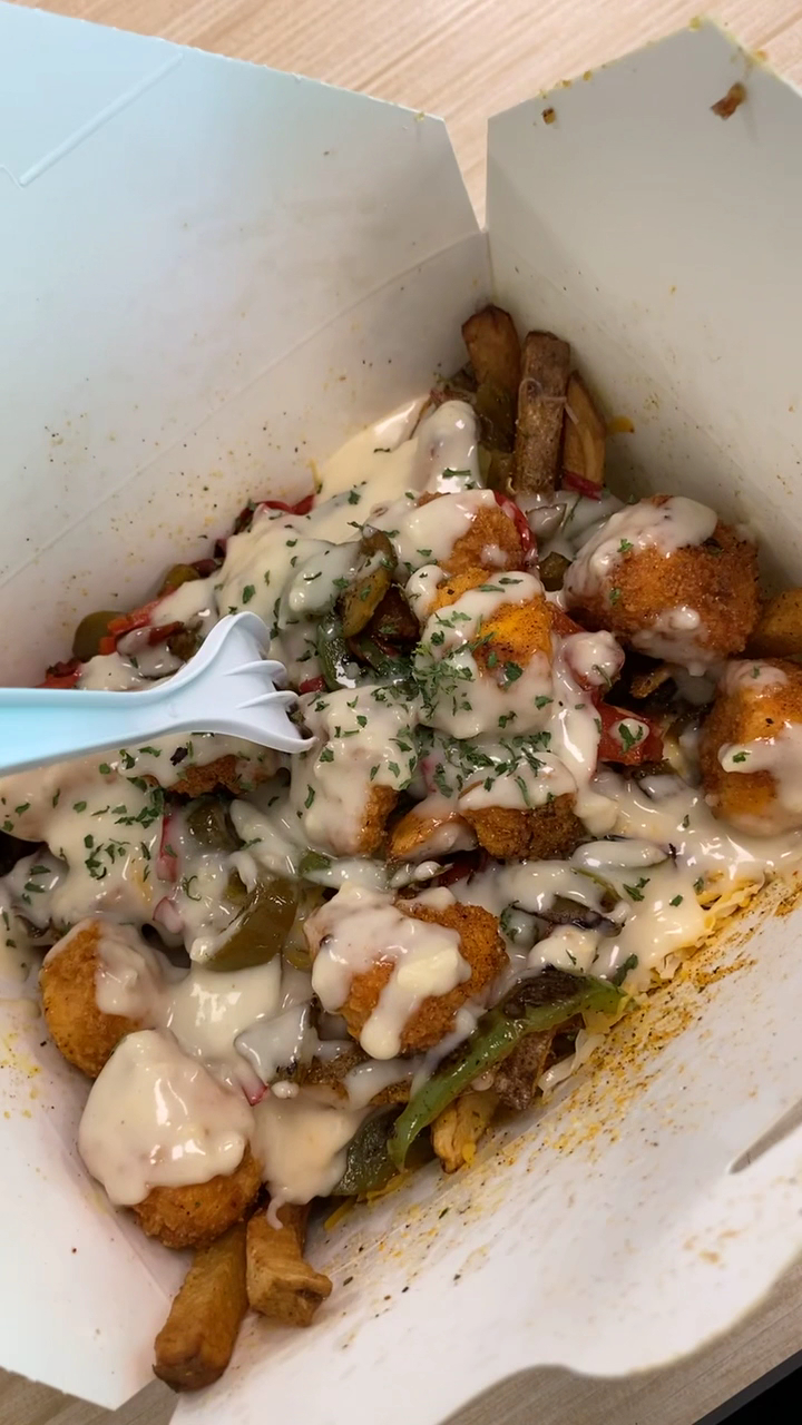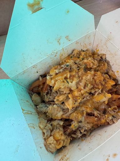 Read moreAs soon as I walked in I was greeted by two men one working the counter helping a guest and one cooking. When it was my turn to order I knew I wanted Salmon bites as recommended by the person that told me about this place. They have two size options and I chose small which is the perfect amount for one person. The large would be a good amount for up to three people to enjoy. They have orders to choose from or you can build your own. The gentleman that helped me was very friendly and patient and made suggestions for my salmon bite fries and we topped it with lemon garlic sauce, added peppers, jalapeños, and cheese of course! The fries are fresh cut potatoes and served with the perfect crisp. They weren’t soggy even with the sauce and cheese on top which was delicious and not too spicy even with the pickled jalapeños. Oh and the salmon bites were cooked to perfection, they were crispy on the outside and not too breaded and the salmon was flavorful and perfect texture on the inside not being dry or undercooked. They didn’t taste like they were frozen either if they are I couldn’t tell by the taste. They gentlemen were so attentive making sure everything tasted great and that I was enjoying myself. One thing worth mentioning is if you’re on a time constraint call ahead as these are made very fresh and with that they take time. I didn’t wait long but it was longer than “fast food” time but I wasn’t in a rush and was enjoying the music and vibe it was a pleasure to sit and wait. I cannot wait to go back and try the buffalo fries they have on their menu! Thank you for an...