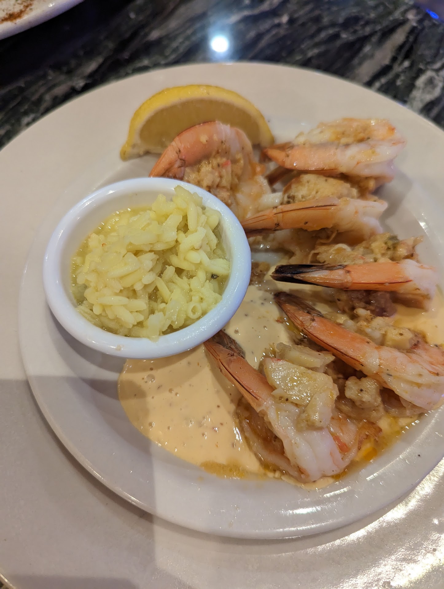 My husband and I were heading to the Fox Theater this evening when two employees came out with smiles and a great attitude told us about the delicious buffet and some of the items on it and we should stop in before the show. We did just that. We probably should have looked at what they considered a buffet before we sat down but we didn't. The coke was kind of flat but no biggie. So the "prime rib" was like the frozen salisbury steak tv dinners but was probably the best of the hot food items. The other meat options were a lemon pepper cod fish(so dry I could barely chew it), chicken Parmesan I believe but that was not edible either(very dry, old tasting, like days old. Then there was a Hawaiian Chicken, I couldn't bring myself to try it because it did not look great. My husband tried it he said it wasn't terrible but had zero flavor. There was mashed potatoes(clearly boxed mashed potatoes with zero seasoning or flavor) the gravy made the potatoes fine… corn straight from the can with zero seasoning or flavor… asparagus (gross). The worst part was the Alfredo and broccoli noodles. I don't know if the noodles or the sauce was bad but I couldn't do it. It was like sour water Alfredo noodles. I ate lots of "prime rib" mashed potatoes and gravy, salad, and fruit... For $25.00 a person.