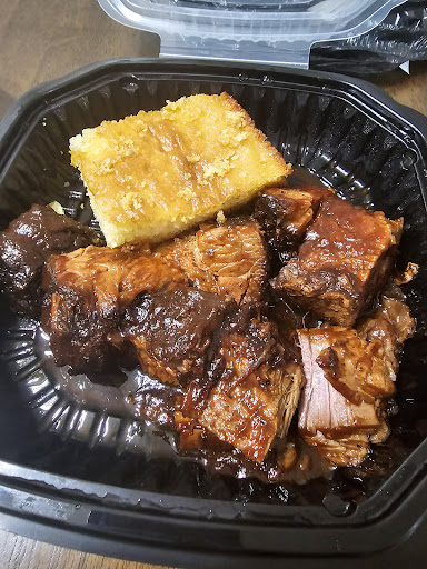 I ordered the burnt ends and ribs combo. The ribs were severely overcooked, dry, and gray with no apparent smoke ring. These were probably oven baked. The "Burnt Ends" were decent, although the sauce wasn't caramelized much less burnt. The cornbread was completely inedible except for one bite in the center, which wasn't very good. It was dry and crusty around the entire edge like it was cut 2 days ago.