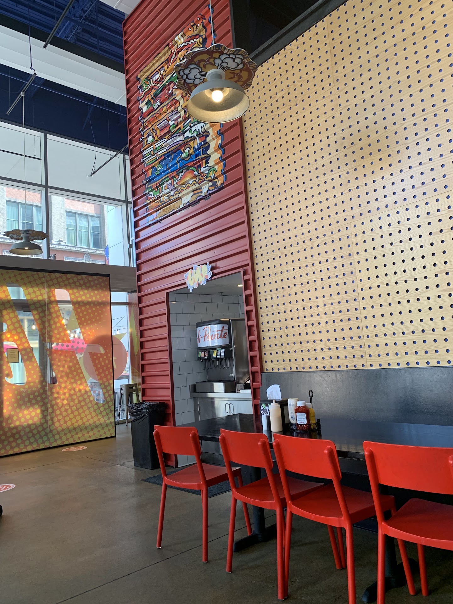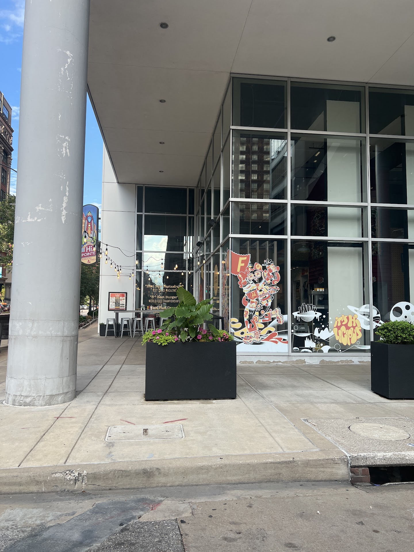 Was downtown for a Saturday night staying at a hotel around the corner. Decided to venture away from eating a âhotel restaurantâ and passed by this place. We ordered our food to go so we could just take it back to the hotel since it was extremely hot in there and we had been out walking in the heat most of the day. Anyhow, we walked in and it was somewhat confusing to figure out where to order. The guy in front of us offered us to go ahead of him because he was still waiting for someone to join him. Well, we stood at the big glass window/counter thinking this must be where you order, no signage gave any indication exactly where to place the order and the girl at the register just stood there staring at us rather than say something you would normally hear like âI can help you over here when youâre readyâ. So we placed our order, gave our name, got our soda cups and paid. Walked over and found the handy toolbox that had everything you need for condiments and around the corner got our sodas. We returned to the entrance area waiting to hear our name called. The wait was extremely long for just a burger and fries. I have gotten delicious steak dinners faster than that. We were getting some entertainment out of an angry employee being so rude to customers that you couldnât help but laugh. Although, those customers didnât find how they were being treated by this sweat covered angry employee found it as entertaining. I did feel somewhat sorry for this employee having to work in such warm conditions. Itâs in a fairly nice building and you would think air conditioning would be available for employees and patrons alike. Moving on, we get our food after standing there for around 30 minutes. Got back to the hotel and opened the greasy wrapper thinking we are about to eat a delicious juicy burger. I took a bite and ehhhhh wasnât juicy. Overcooked and zero seasoning. Perhaps had they not put the meat through a cremation process it would taste better. The fries were good but not great. Cold and soggy. In summary, it was a greasy white sack of disappointment. I saw signs around the restaurant making jokes about â420â and getting âhighâ. Perhaps investing in signs of where to order would have been wiser because a person would probably have to be under the influence of something to truly believe this food is as good as the...