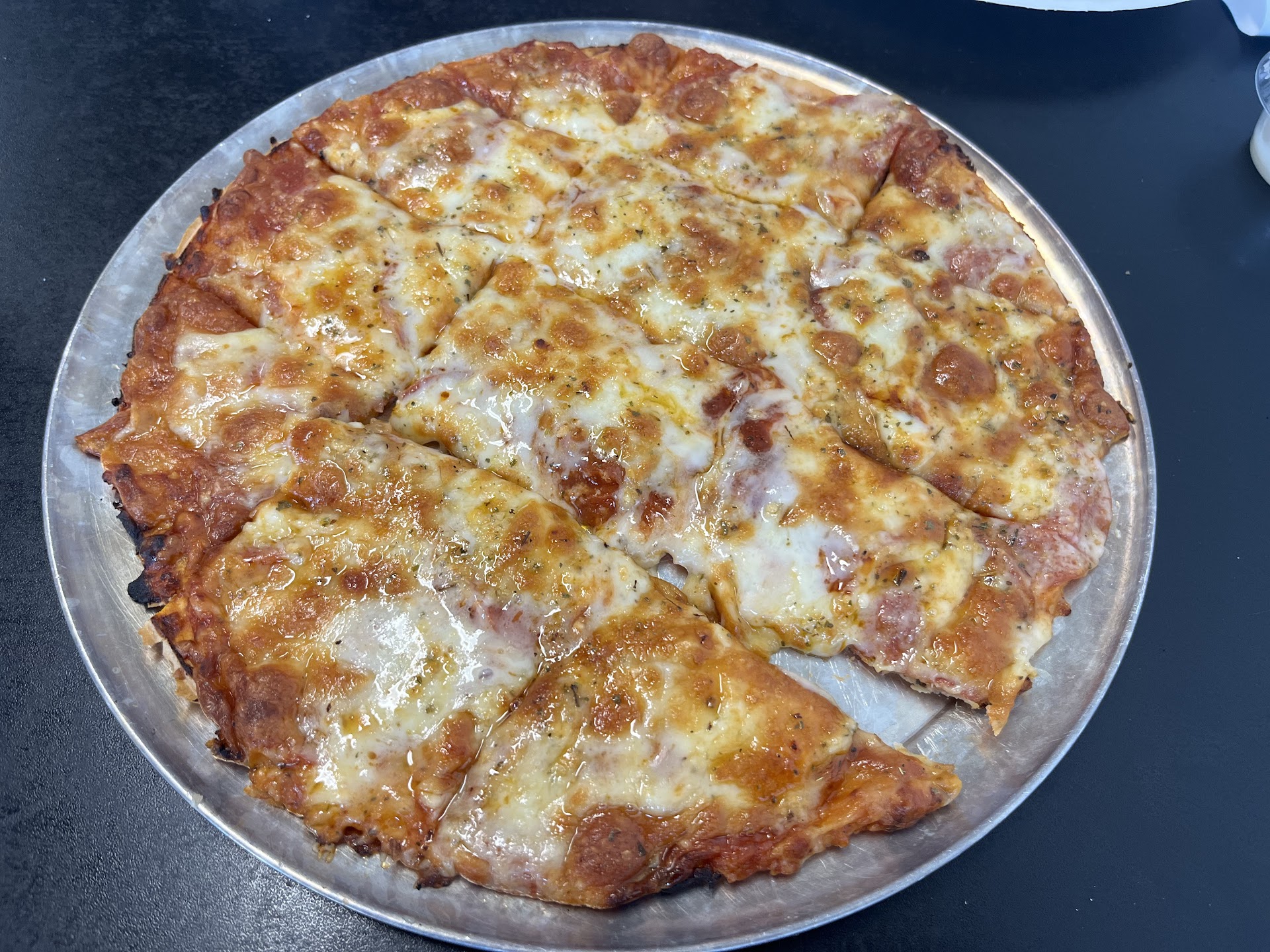 Read moreNot the best pizza, but definitely the better option for my time in St. Louis. At the time, I did not realize that St. Louis style pizza was a thing and if I had not had other pizza in the area I would rate lower. But they added something other than provel (there was still provel cheese) that gave the pizza a little tang and regular cheese texture. Got the cheesy garlic toast as well. It looked pretty unremarkable, but the provel in that use worked as a kind of link from bread to garlic butter and made it tase more creamy in a good way. Cracker thin crust, provel and some other cheese, and pepperoni. Service was a little weird. The gentleman taking orders in the tucked in black shirt left to address something before taking my order (no issue here). But when he stepped away, a thin guy from the back wearing a red shirt came up to the register, put his hands on the counter, leaned over, and then leered at me over the register. I wasn't sure what to do so I tried to start ordering but he didn't move or speak. Then the black shirt guy came back, hip checked the red shirt guy away and used his arm to guide him back to the cooking area. That was a little off putting. A bit of a walk from the hotel I was at, but if you go in a group during the day you...