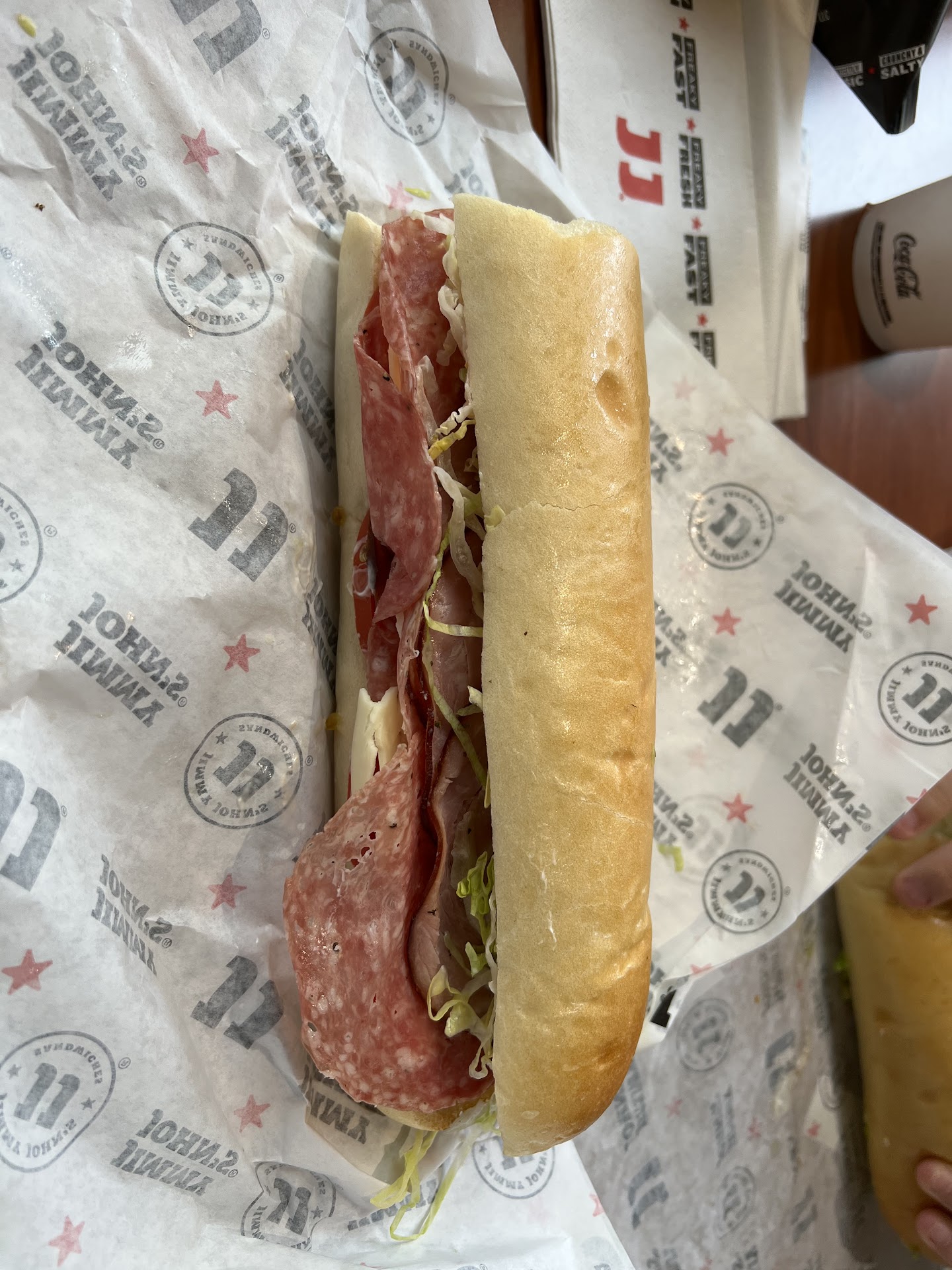 Read moreI have always loved Jimmy John’s. I stopped going to this location because two times my order arrived to my home and the delivery driver had smoked and my food smelled like cigarettes. This purchase was made through the drive thru and has been more than disappointing. This is the Vito. It barely has anything on it. They also didn’t add the additional items that I had asked and I got home to see this. I called the store and they didn’t seem to care. I called customer service and sent a photo to them and the agent told me that it looks like a properly portioned sandwich. When I told her that I wanted to be compensated with either a refund or a delivery with a new properly made sandwich - she hung up on me. I will not be coming to this location again - far too many issues and when looking at other reviews - it seems this...