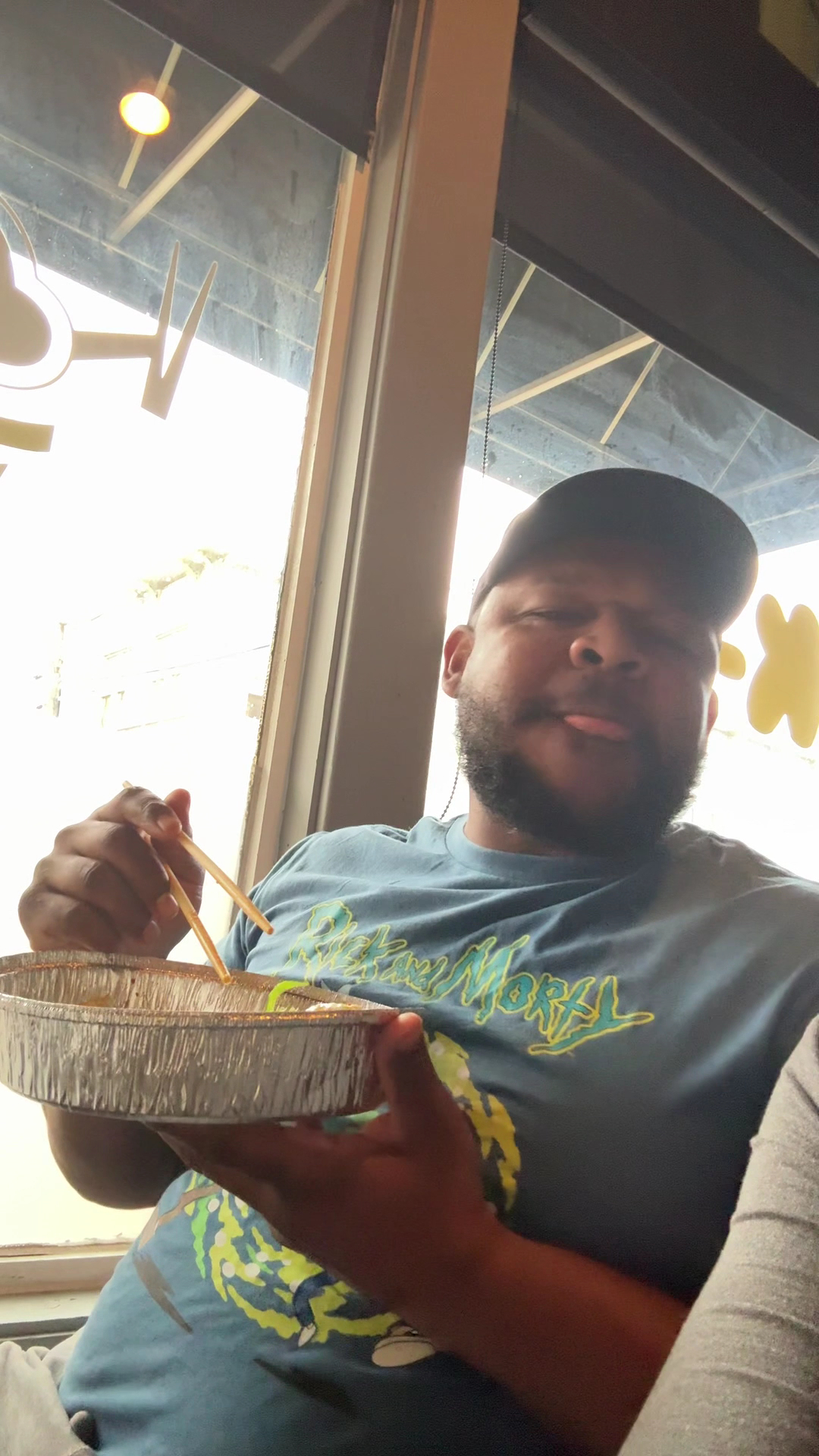 So we get our food, none of which is even halfway labeled so anyone can tell what is what, and then we realized that they just totally didn't put in two orders. Whoops. So those people had to go back down to get their food.