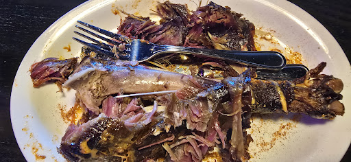 we ordered "crispy turkey leg" im guessing it was baked a little and then deep fried and sprinkled with seasoning. it was tough not tender, zero smoke flavor and only flavor was the season salt on outside of leg.