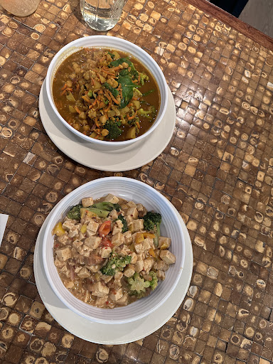 Love ‘n Light is a place you must visit, if you are looking for wonderful Vegan dishes! My first time visiting STL and this is a memorable stop for a FOODIE! Okay let me share the scrumptious dish #1 Rawfredo. It came loaded, so you better have an appetite. The zucchini noodles, mushrooms, onions, kale, onions, carrots, etc. the cashew sauce was a great touch. And of course the colors of the dish were pleasing to the eye. Dish 2 was the Coconut Tofu Curry; all I can say is yummy! On a cold winter day this dish was a nice treat. The warm curry dish was a delight for my insides. And those potatoes had a nice texture, a great compliment with the veggies over jasmine rice. Dish #3 the Falafel Pita, filled with fresh cucumber, kale and a great garlic dill mayo, the Pita is good and filling. All the portions we picked were more than enough to share between two people. Zane was pleasant and had a great demeanor. The restaurant has a chill with a Relaxing vibe, music playing also helped to set the mood. We enjoyed the aesthetics and the hydro pods growing fresh herbs was nice to see. And the lovely artwork too. We witnessed Zane cut fresh herbs from the pods, used to prepare our wonderful dishes. Absolutely great food, service, and environment. We felt the prices were good also, never an issue as long as the food is good! The solar plexus smoothie is good. Forgot to take picture of my drink, drank it too fast.