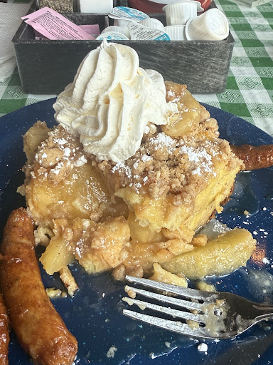 Homemade cinnamon rolls and biscuits are delicious! A friend and me on cinnamon snobs. We’ve tried them many places while on vacations. And we both loved these, better than most we have tried. They change up the cinnamon rolls now and then. Some with crème cheese, fruit, or a Mexican with chocolate then just the regular which we had. Everyone at our table of four enjoyed their breakfast from eggs benedict, breakfast slinger, veggie omelet, biscuit and gravy. We were close to a wall, the chalkboard and bar and were able to have a conversation just fine. The table behind us had 3 people and we really couldn’t hear their conversation. The wait staff were back and forth to the bar and didn’t interfere with us at all. The staff and waitress couldn’t have been any better. I came in a wheelchair with one leg prompt up and out of the few tables left they put us in the best one for me where I could keep my leg straight out. We stayed and talked awhile, the waitress and another guy kept checking on us and refilling our drinks. We got there on a Sunday about 9am and there was a crowd but a few tables left. By time we left a little after 11am, some folks were waiting for a table. The owners are the parents of the Riverside Cafe (dinner) and the kids kept Riverside. Riverside’s food is great as well but not as handicap accessible. We will go back and hope they stay in business there for...