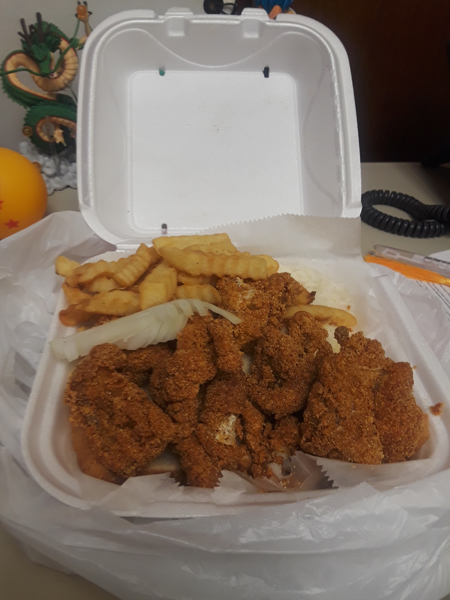 Read moreOk where do I start ….because customer service is extremely important to me I’ll start there…the young lady at the counter had a nice-nasty yet extremely non chalant representation ,the music was a little loud therefore it made it hard for me to place my order or her to hear me well. Although food prices have went up pretty much everywhere I did feel as though the cake 🍰 prices were a tad bit ridiculous (8.00 per slice )the fish I got looked as if it had been cut in half (catfish filet ) it was smaller than what I’m used to and the okra slightly under cooked. Shrimp 🍤 was ok and the fries were good. I didn’t have a long wait so that was a plus. That’s my story and I’m sticking to it. Not like they used to be 💯 can’t say that I’ll return to be honest. I feel like people should be welcoming when you are spending money in their establishments and not make one feel like we...