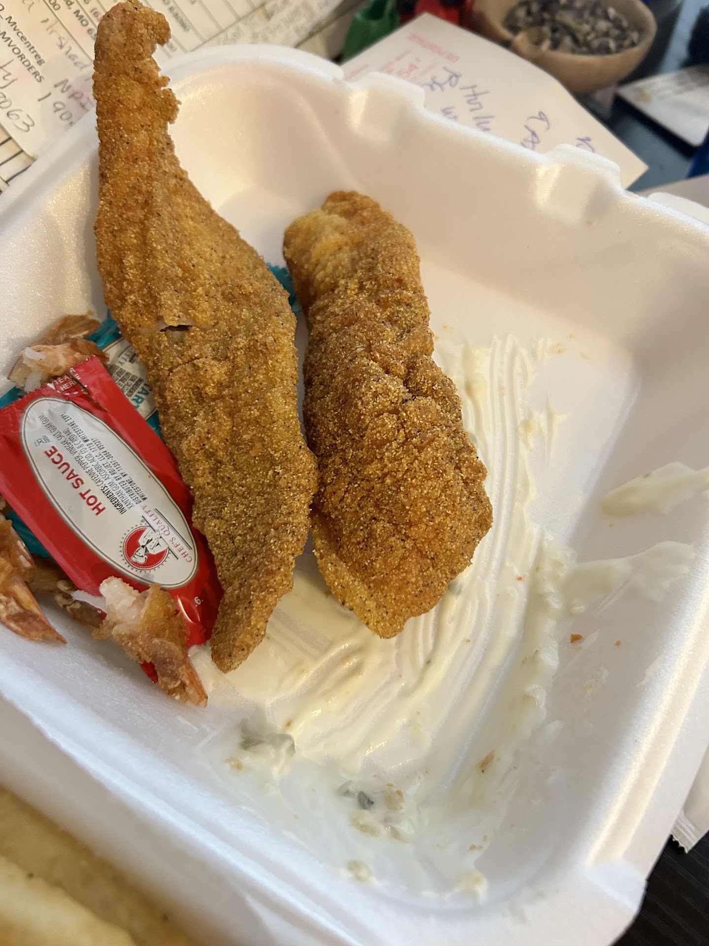 One bite into the fish and I was immediately disgusted. What I expected to be catfish was really SWAI or BASA, which is NOT THE SAME. I'm offended because she should have mentioned that the "catfish" they serve is actually SWAI, which is a "Japanese catfish" and monumentally different than the catfish I'm accustomed to. . The "seasoning" on the fried tasted like paprika. Just straight up paprika with no salt added, which made me feel like someone was trying to be funny.