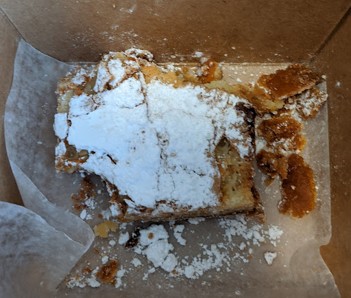 As for their famed gooey butter cakes, I will say that they are solid! As a gooey butter cake and baked goods lover, I have certainly had better gooey butter cakes. The slices are a little thin for me, but that is my only true complaint. I prefer the various Schucks Bakery gooey butter cake flavors. I have had the Mom's Traditional Gooey Butter Cake, and I had the Red Velvet Gooey Butter Cake for my birthday yesterday. I like red velvet, and I actually had a generous serving of red velvet cake from Schnucks at my birthday party at lunch as well. What a wonderfully unhealth day full of red velvet flavor! The Red Velvet Gooey Butter Cake slice had a nice sweetness, and the home-made cream cheese icing complemented it nicely. This ice had a nice sweetness. I will continue to compare cream cheese icings to the bad cream cheese icing that I had at Crumbl Cookies on their Red Velvet Cream Cheese Cookie, which was literally just plain, unsweetened cream cheese. Moreover, the Ghirardelli chocolate gooey butter crust was not overwhelming.