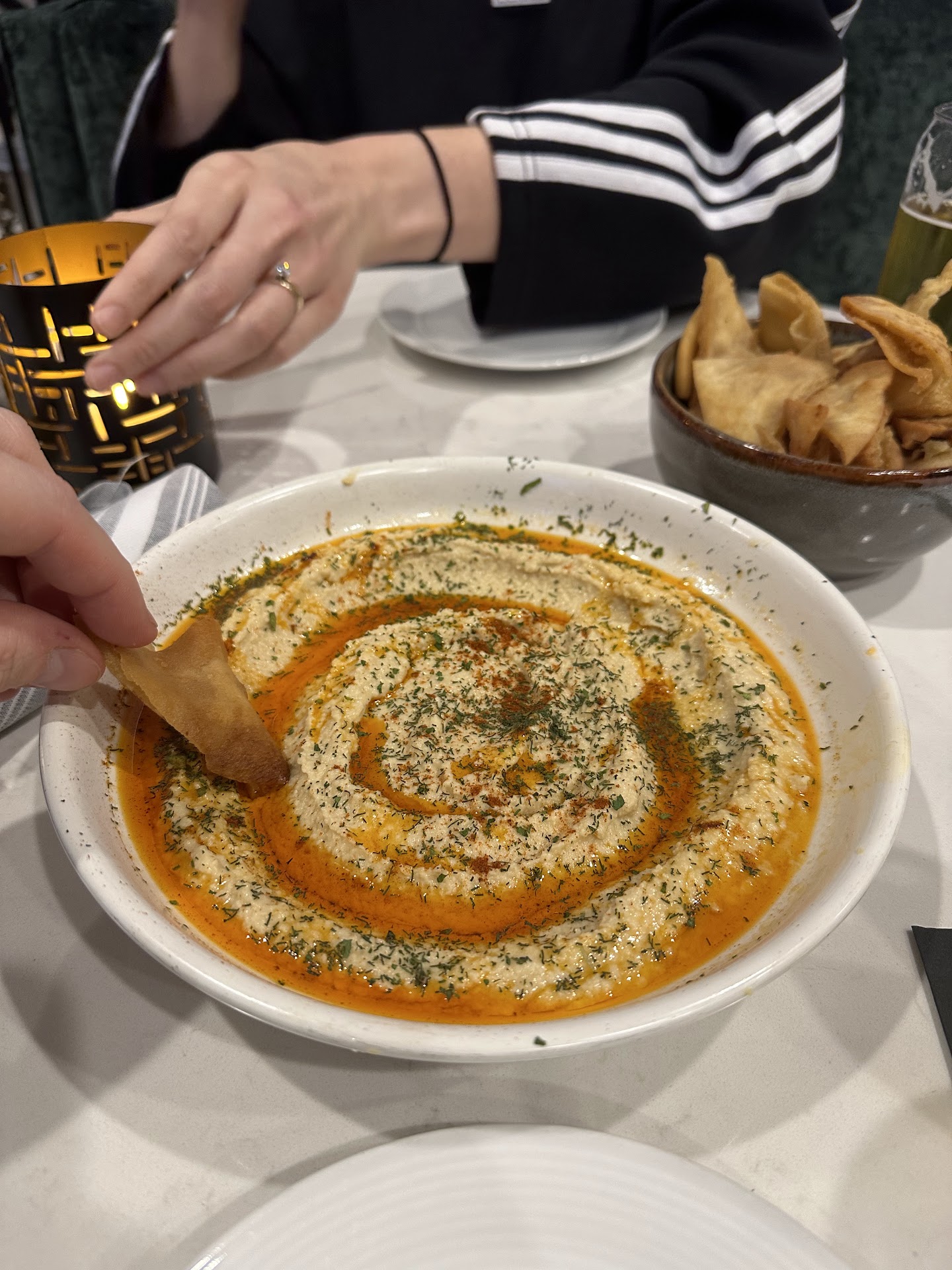 We decided to get appetizers instead of entrees so I cant speak to the main dishes. The hummus tasted amazing and the serving size was enormous. Personally I think the fried pita was soggy with oil and really made it hard to eat the hummus, and left me feeling kind of rough. The wings had a very unique flavored sauce, the peach in my opinion didn’t come through, but it was tasty. The meat was a little tough and I think the glaze didn’t quite make up for how dry the meat was. We got 4 wings and 4 drums, so not the worst price for wings if you get the $2 off at the happy hour. Personally I would skip out on them if could go back. I will definitely be back to try the entrees and will update my review depending on...