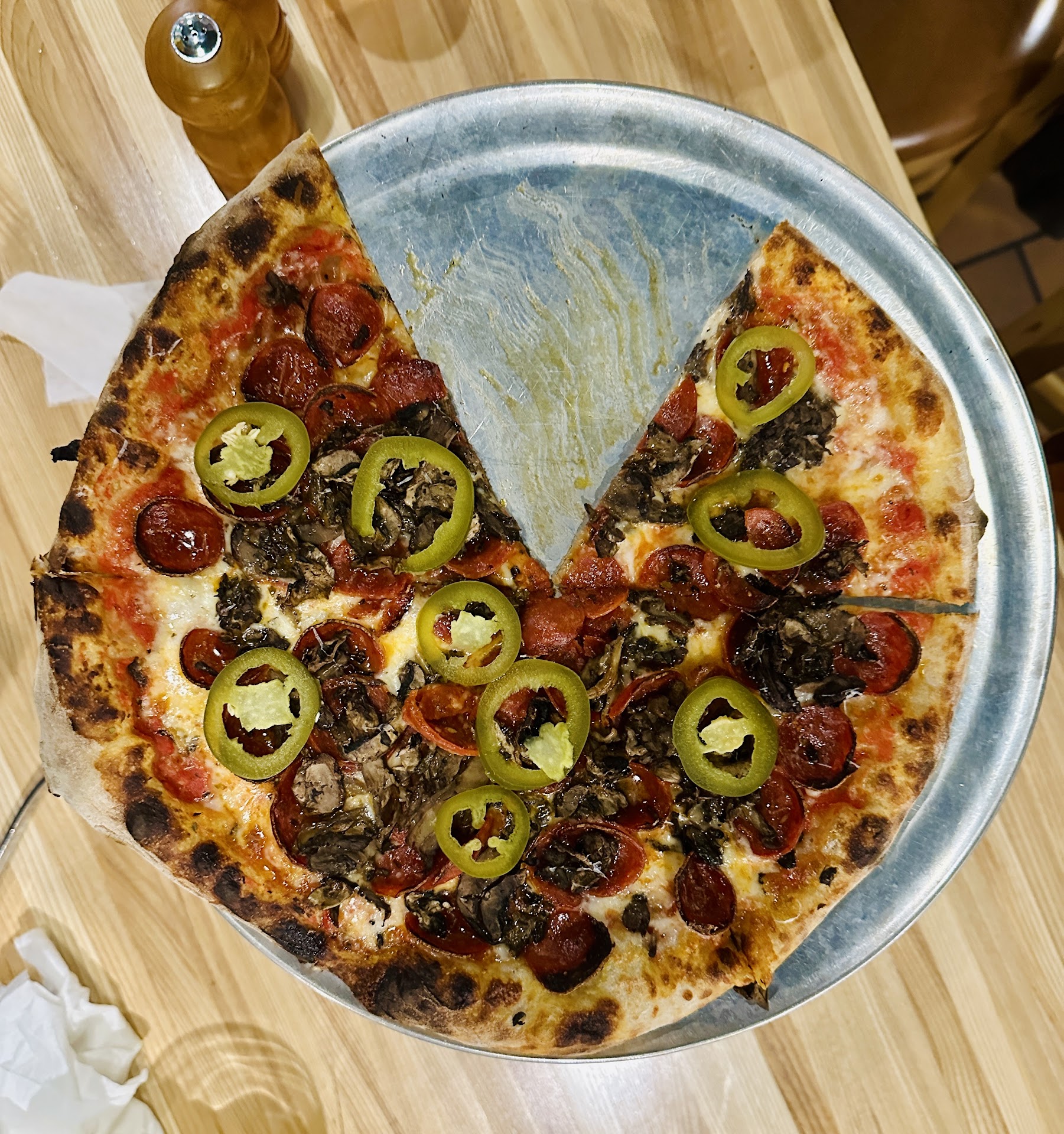 Aside from a classic Margherita, I can best judge any pizza by trying it in the other form that is my true “go-to” - pepperoni & mushroom. And wow, I honestly can’t remember the last time I had a round pizza in this version that was this good (including Noto & my own). The cup & chars were perfectly crisped and spaced, the added mushrooms were premium & plentiful (usually they’re disappointingly topped too scarcely for my liking), and the pickled jalapenos paired perfectly (no surpise there since I also utlilize them for added tang with my pepperoni freezas). The sauce & cheese ratio (where 90% of pizzerias fail IMO) were spot on which allowed them both to shine and burst through in a complimentary way on the taste buds. And the crust had just the right amount of crunchy chew, artisan flavor, and slight flop that blur its genre between Neapolitan & New Haven. What a treat this pizza experience was 👌🏼🤌🏼🤌🏼