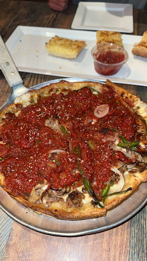 Drove past the other day and got curious. We saw that they had really good reviews so we decided to stop in. We showed up at around 7:45, and the hostess greeted us in a very friendly manner and let us know that we wouldn’t be able to get deep dish pizzas after another 10 minutes and recommended that we order them as soon as our server takes the drinks if we wanted to get one in. That was no problem, so we did exactly that. Our server didn’t let us know that so thank goodness that we knew that ahead of time. I ordered a jalapeño strawberry margarita, it was super gross and tasted like old margarita mix.. I didn’t complain or point this out. Our server wasn’t rude, but wasn’t particularly friendly- no smiles no extra effort of customer service, but overall the customer service was OK. We got our food and had been eating for a while, our server checked in to ask if everything was OK and we said yes. A couple minutes later he brought over the check and said are you guys ready for this? I said actually no, do you guys have dessert? He said yeah… Then pulled out his phone and looked down and said, but actually our kitchen is closed. Our kitchen closes 30 minutes before close… What was particularly strange was that it was 8:27 hours are posted as closing at nine, so this is pretty nit picky, But if you’re going to specifically tell me that your kitchen 30 minutes before closing, Then you should probably say that 30 minutes before closing. What’s extra strange about this? Is that on the table? They have a photo of a cheesecake which I’ve included in the review, I’m pretty sure that you don’t need the kitchen to make me a piece of cheesecake that’s sitting in your fridge… But OK. They were clearing out, and around 815. The hostess asked our server if the light was switched off to indicate that they are closed. I’m definitely not a fan of going into a restaurant at the last minute, but turning the sign off early seems a bit odd, especially for a small business. They were pretty much clearing out and cleaning up early, felt like they were rushing us out, and even though our server prematurely brought over our receipt, the hostess kept peeking around the corner from the kitchen and checking our table. It definitely felt like they were rushing us out even though it’s 833 as I sit here writing this review waiting for the server to come take my card so that we can just leave because it’s seriously uncomfortable. It’s odd, forgetting the receipt so prematurely we had to wait eight minutes for him to come back to get the card and then he cleared the table before taking payment. We get it you’ve made it more than clear that you’re in a hurry to leave. We are trying to leave so please let us do so. The food was really good, we got the St. Louis original deluxe and the garlic cheese bread. Both were tasty, but given our experience, we will never ever come back here and can’t personally...
