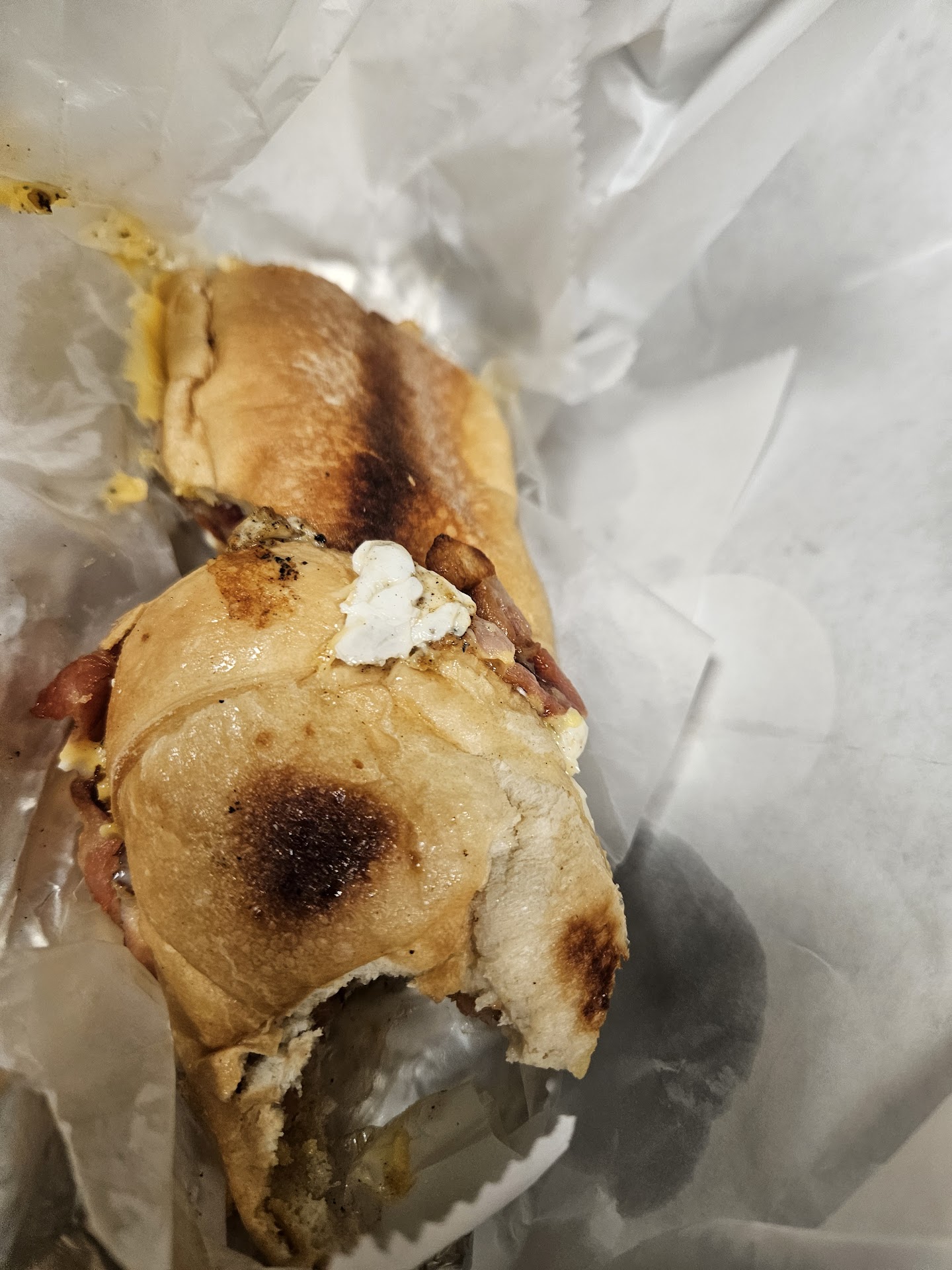 This is a small convenience store that I have passed by every day for the last 3 years. I always say I'm going to stop after work for a sandwich but the one time I did, it was after 4pm & the kitchen was closed. So today, I decided to come in. I was the 1st person & the guy behind the counter said jokingly after I asked if the kitchen was opened"Oh, you gonna make me work today huh" lol..I said "Yep" & a bond was formed lol...I told him I wanted a "bacon, egg & cheese sandwich, he said, with mayo, I said sure". He said the next time, I can call & he'll have it ready for me. I told him it was my 1st time, he said, "Hope it won't be your last" & to let him know how it was...so here is my review....I want another one..tomorrow & the next day. In fact, I want to try ALL the sandwiches on their menu, in fact, I may have to call in an order today b4 I get off, so I can try their deli sandwiches. It was that good! The fresh egg, the tasty bacon, the cheese & the mayo blended just right & the bread tasted fresh! I'm eating my other half while I write this...the price was reasonable as well. I paid $7.98..I will be back,...